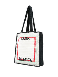 - white - two top handles - main compartment - stripe detailing Materials & Product Care Lining: Lyocell 100% Outer: Cotton 100% Size & Fit - The model is 1.87 m wearing size OS.