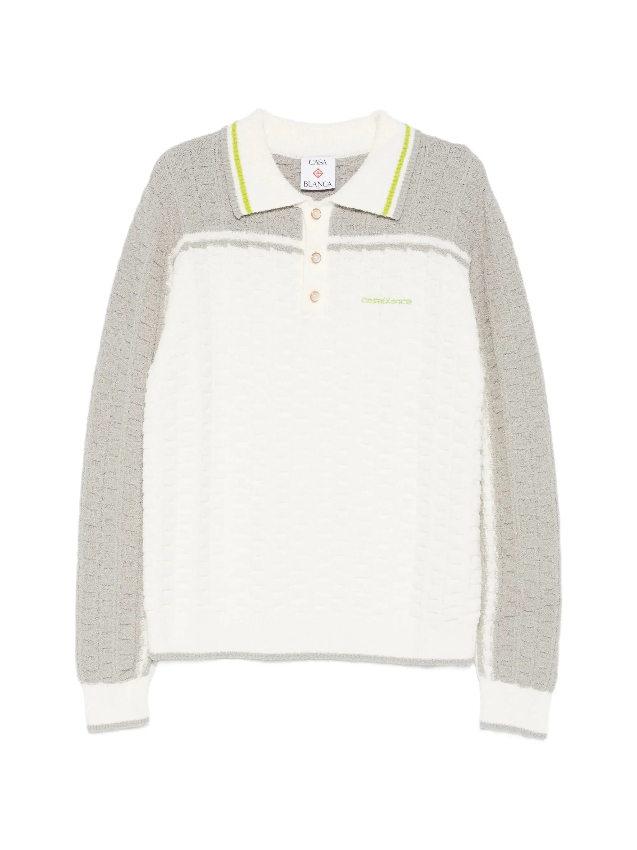 - white - grey panels - polo collar - front button fastening - long sleeves - textured finish Materials & Product Care Cotton 72%, Nylon 27%, Spandex/Elastane 1% Size & Fit - The model is 1.87 m wearing size M.