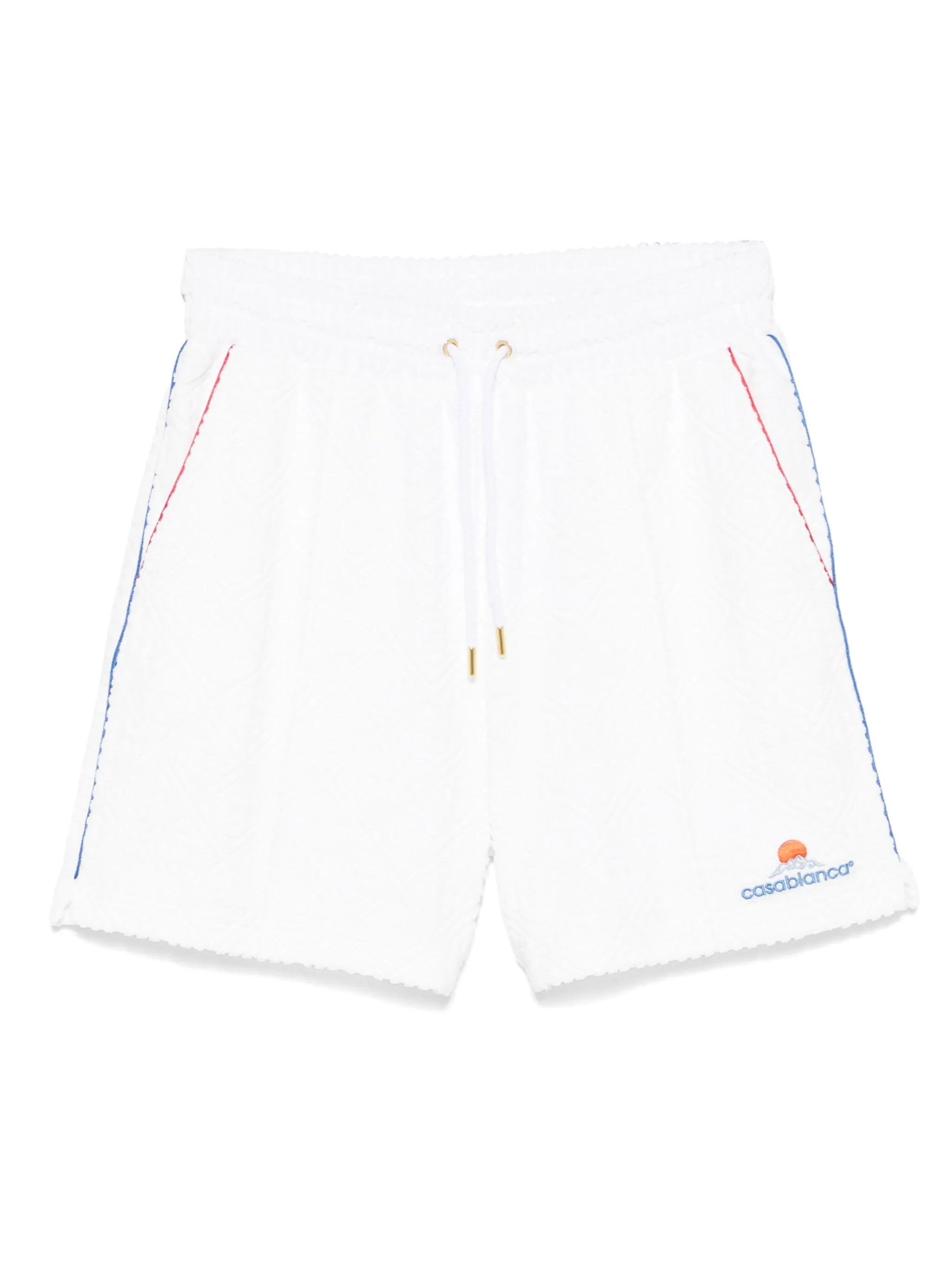 - white - elasticated drawstring waistband - two side slash pockets - rear patch pocket - logo patch to the front Materials & Product Care Lining: Cotton 100% Outer: Cotton 86%, Elastane 1%, Polyamide 13%, Polyester 100% Size & Fit - Designed for relaxed fit, offering a comfortable loose fit over the leg - Made from a midweight stretch fabric, this piece offers elasticity and flexibility when worn - The elasticated waist allows for a comfortable fit - The model is 1.87 m wearing size M.