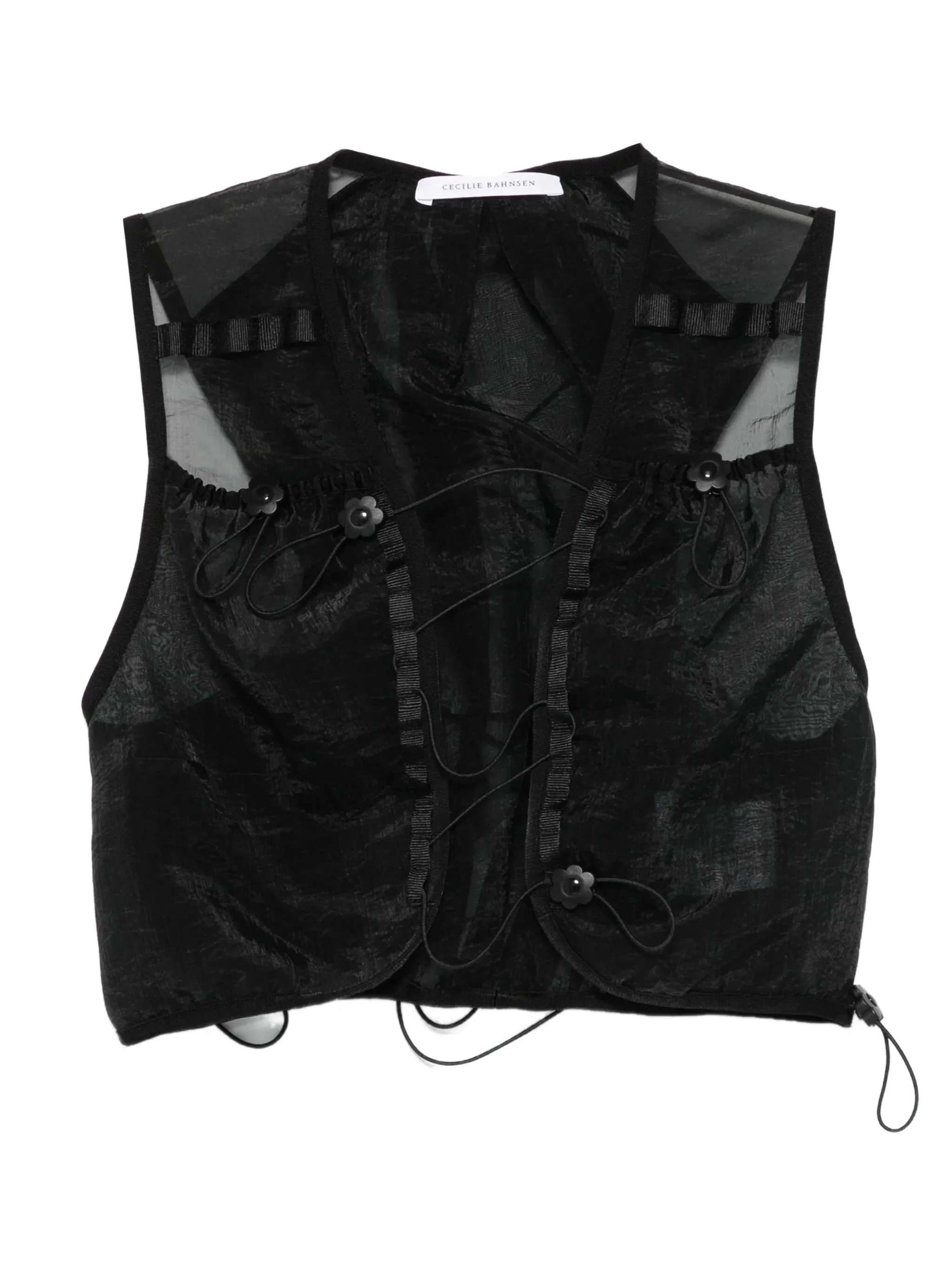 - black - floral detail - drawstring fastening - sleeveless - sheer panel Materials & Product Care Silk 100% Size & Fit - The model is 1.77 m wearing size S.