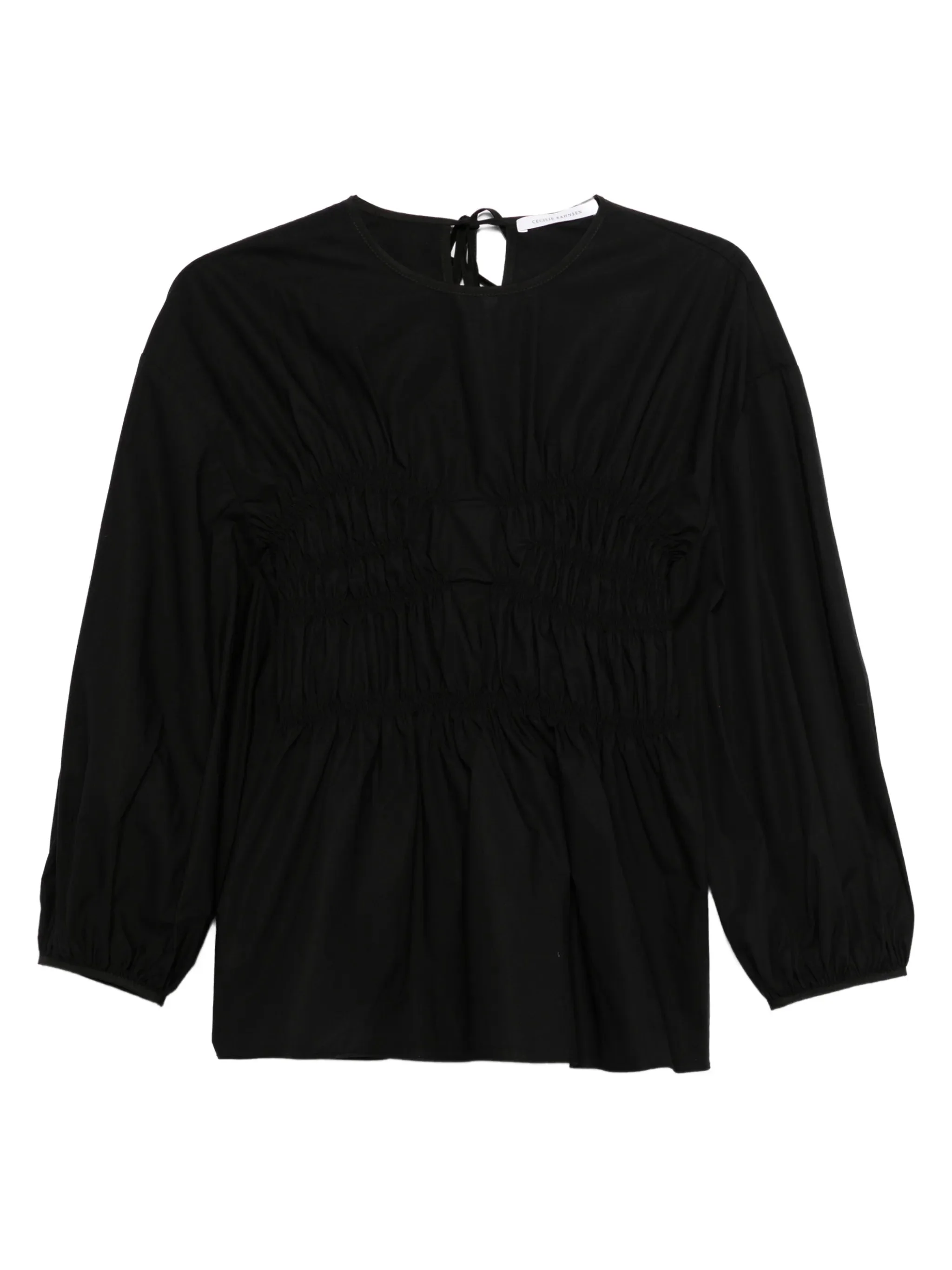 - black - ruched detailing - long sleeves - tie fastening - round neck - gathered front Materials & Product Care Cotton 100%