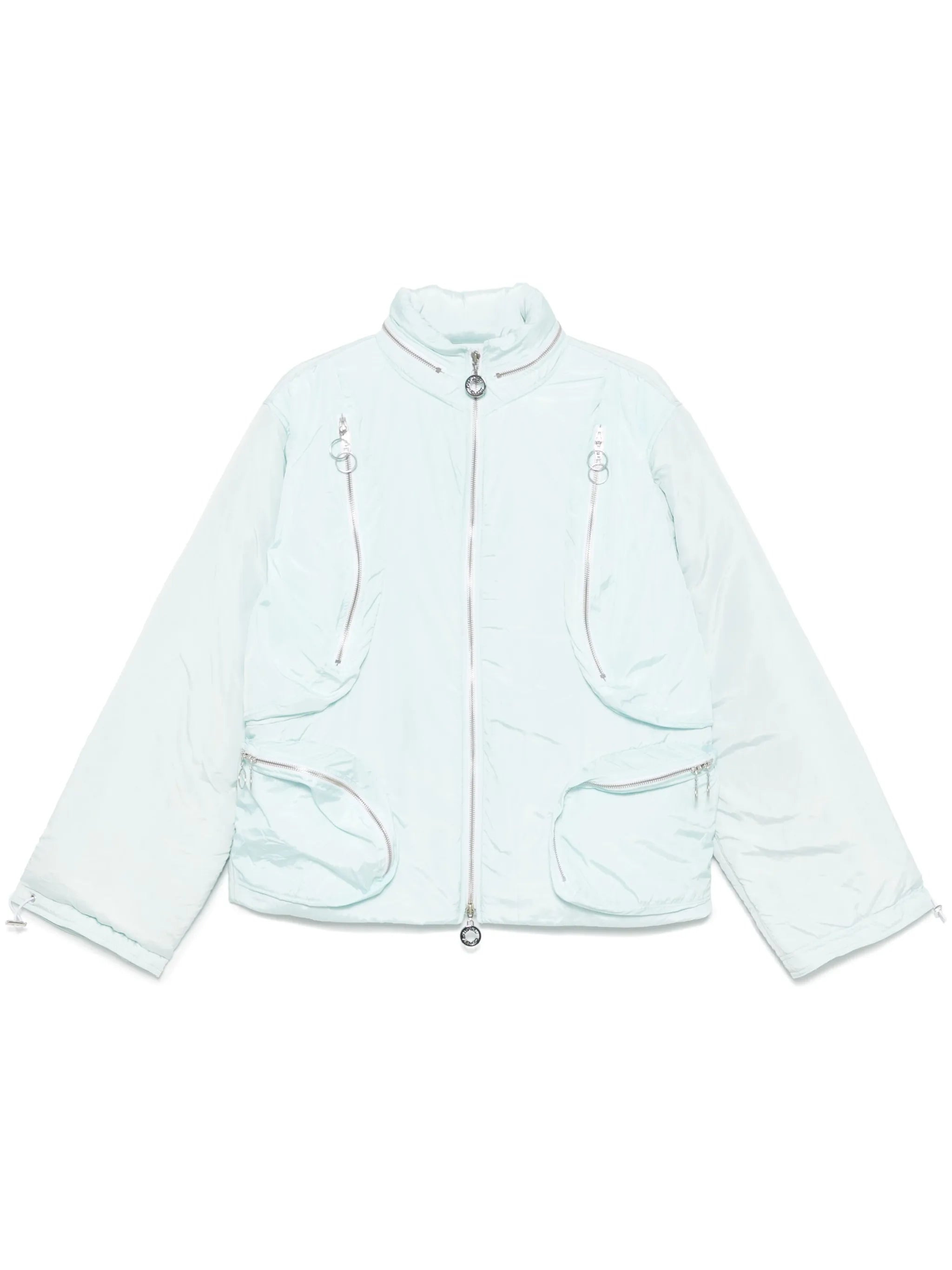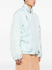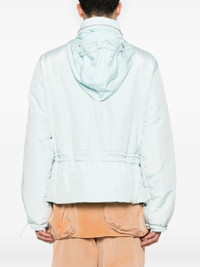 - light powder blue - padded design - multiple zip-fastening pockets - lightweight construction - front two-way zip fastening - slouchy drawstring hood - throat latch - stand-up collar - long sleeves - drawstring cuffs - rear drawstring band - full lining - straight hem Materials & Product Care Merino 60%, Nylon 100%, Polyester 10%, viscose 30% Size & Fit - Designed for a relaxed fit, this piece allows for comfort and movement when worn - Made from a padded non-stretch fabric, giving it no natural elasticity - The adjustable drawstring means that you can adjust this piece’s fit to suit your comfort and preference - The model is 1.85 m wearing size M.