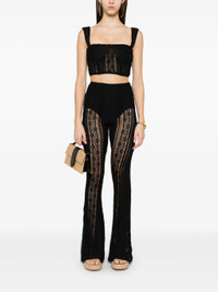 - black - concealed side hook and zip fastening - elasticated waistband - semi-sheer construction Materials & Product Care Cotton 50%, Nylon 47%, Spandex/Elastane 3% Size & Fit - Designed with a flared hem, these trousers allow for a close fit at the waist with a slim fit over the leg and widening towards the hem - Made from a midweight stretch fabric, this piece offers elasticity and flexibility when worn - The model is 1.78 m wearing size S.
