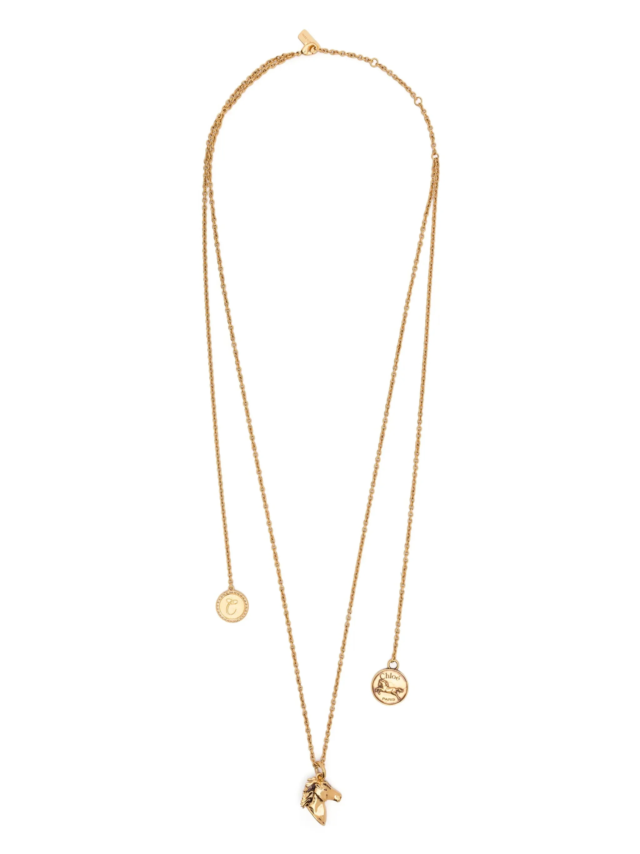 - gold-tone - gold plated - polished finish - medallion charms detail - statement horse pendant - logo charm - lobster claw fastening - engraved logo - Length: 76cm - This piece comes complete with a protective dust bag. Materials & Product Care Gold Plated Brass 100% Size & Fit - The model is 1.80 m wearing size OS.