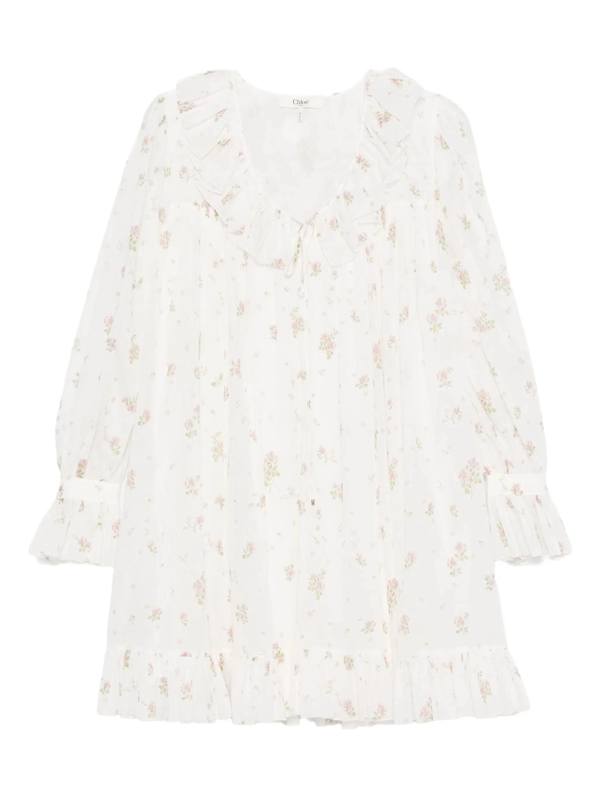 GATHERED LONG-SLEEVE MINI DRESS IN COTTON VOILE