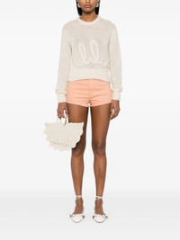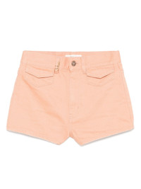 - peach orange - button fly fastening - belt loops - two front flap pockets - rear patch pocket Materials & Product Care Calf Leather 100%, Cotton 100% Size & Fit - Designed for a close fit throughout - Sturdy and hard-wearing, this denim piece offers no stretch - The model is 1.80 m wearing size 36.