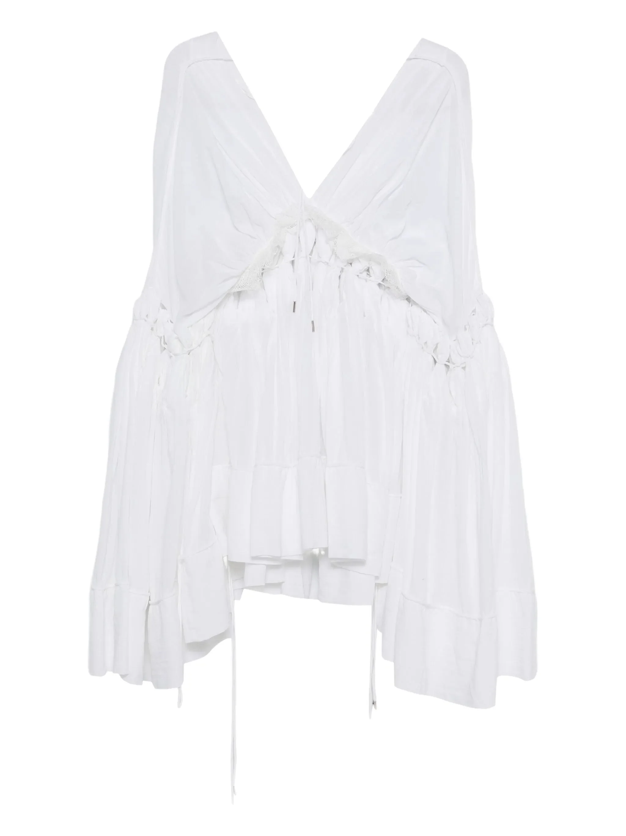 - white - V-neck - extra-long sleeves - flared hem Materials & Product Care Cotton 55%, viscose 45% Size & Fit - The model is 1.76 m wearing size 8.