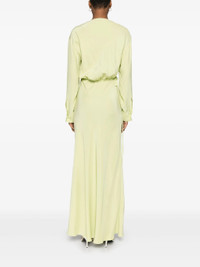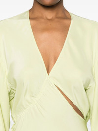 - light green - self-tie fastening - buttoned-cuff sleeves - V-neck - unlined Materials & Product Care Silk 100% Size & Fit - Designed for a loose fit at the chest with a close fit over the waist and hips - Made from a lightweight non-stretch fabric - The adjustable drawstring means that you can adjust this piece’s fit to suit your comfort and preference - The model is 1.80 m wearing size 8.