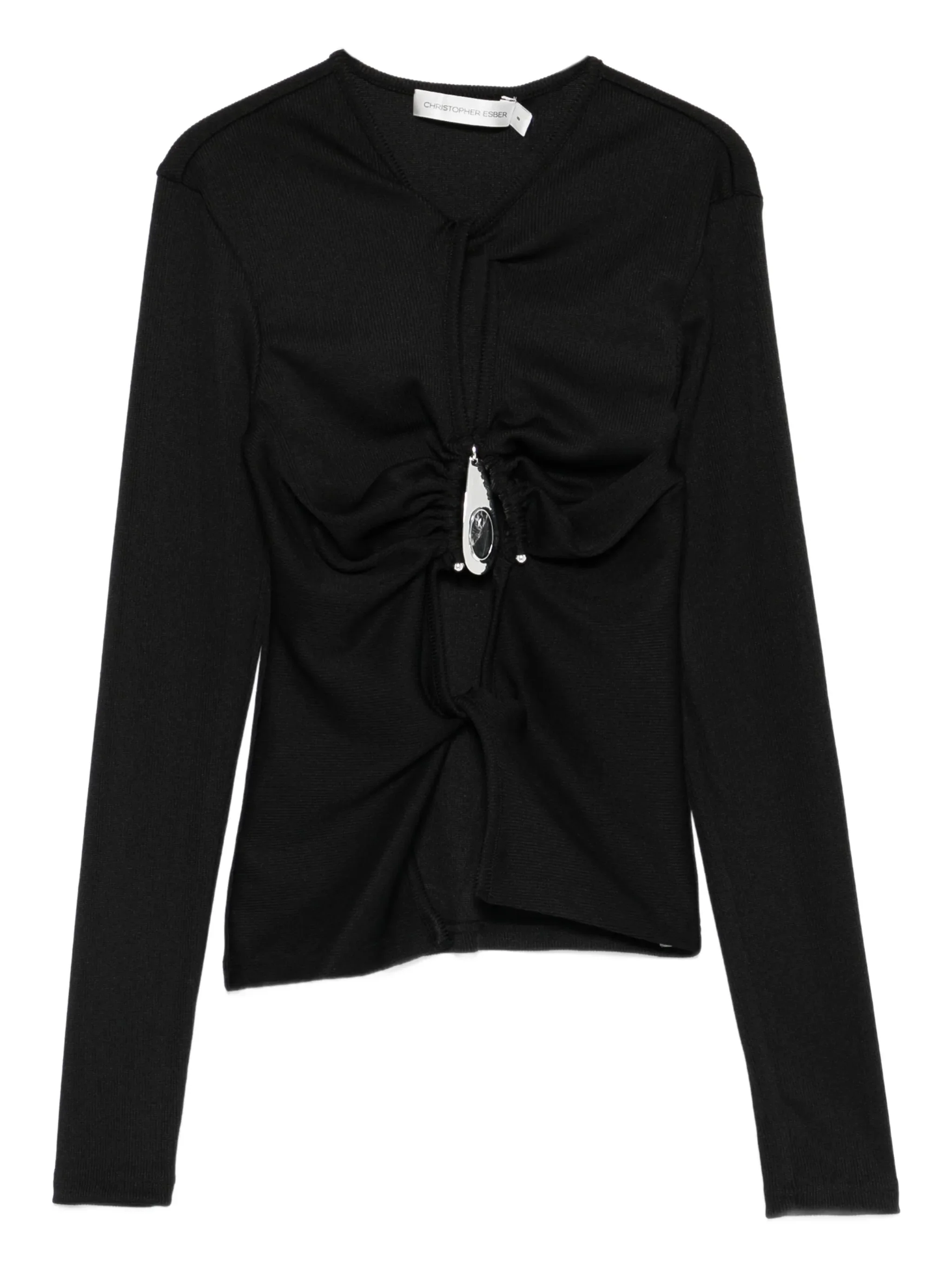 - black - pendant detail - twist front - long sleeves - round neck Materials & Product Care Brass 50%, Polyester 96%, Spandex/Elastane 4%, Zinc Alloy 50% Size & Fit - The model is 1.73 m wearing size 8.
