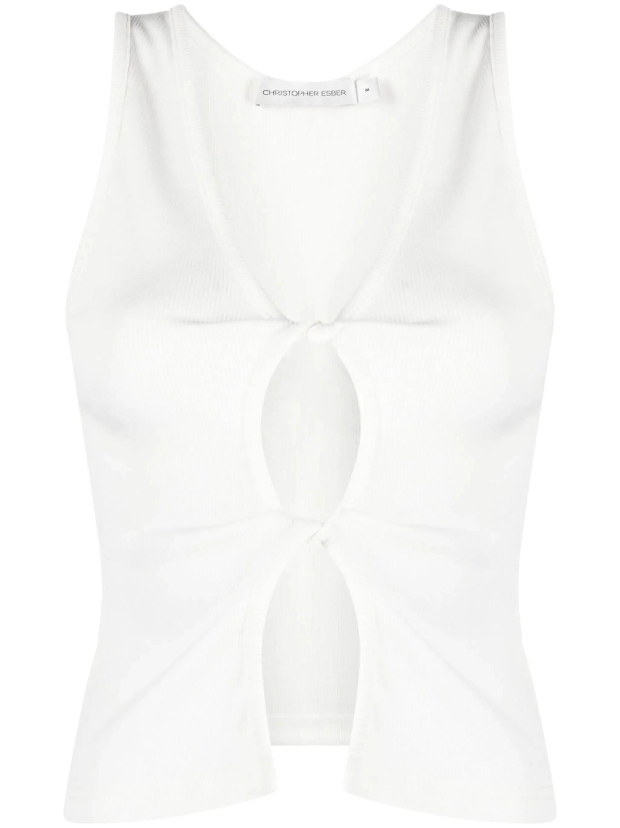 - white - stretch-design - ribbed detailing - twist detailing - cut-out detailing - V-neck - sleeveless - straight hem Materials & Product Care Polyester 96%, Spandex/Elastane 4% Size & Fit - The model is 1.80 m wearing size 8.