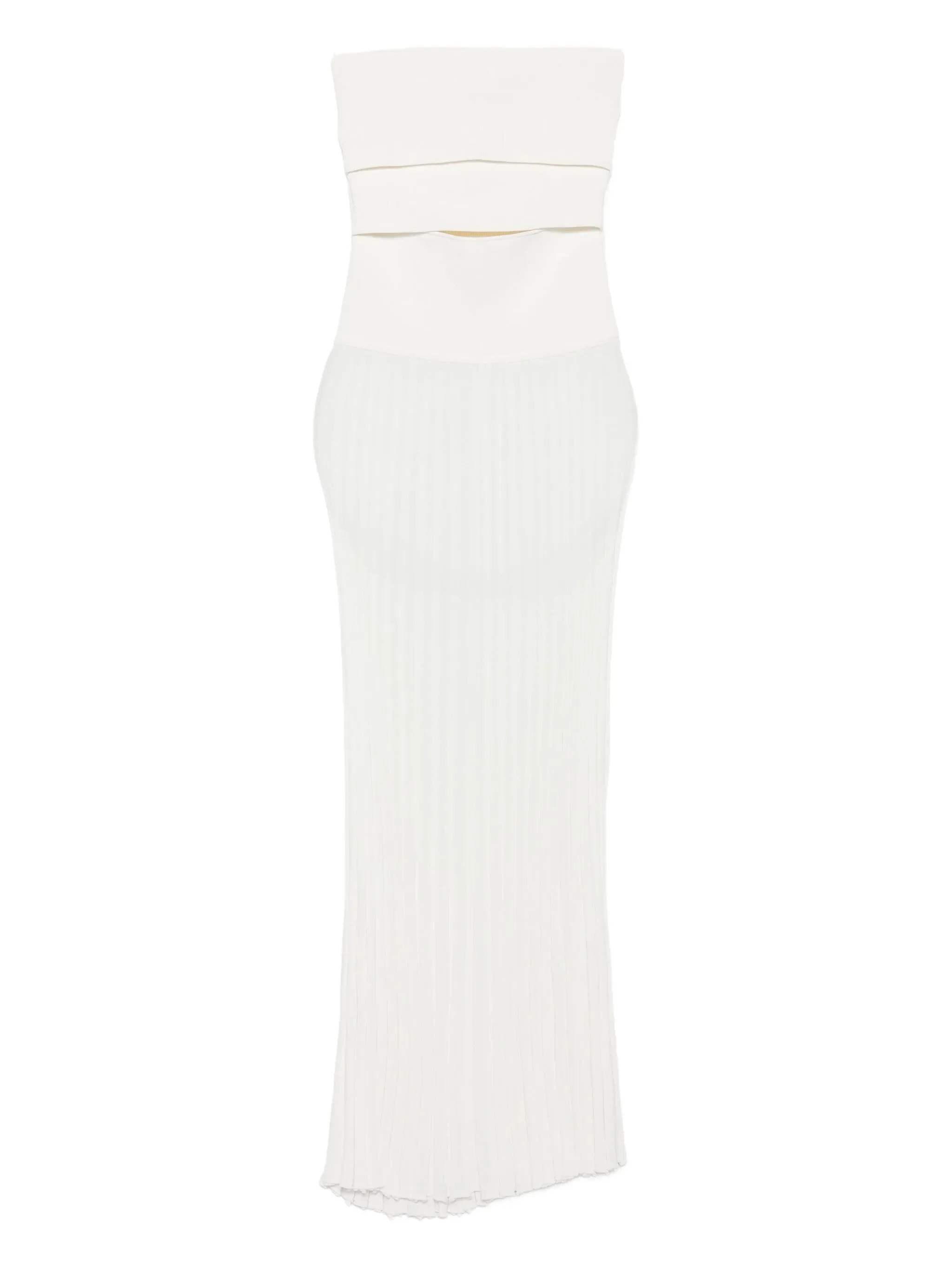 - white - pleated skirt - strapless - cut-out detail - midi length Materials & Product Care Nylon 35%, viscose 65% Size & Fit - Designed for a close fit throughout - Made with a midweight knit, this piece offers some stretch - The model is 1.75 m wearing size S.