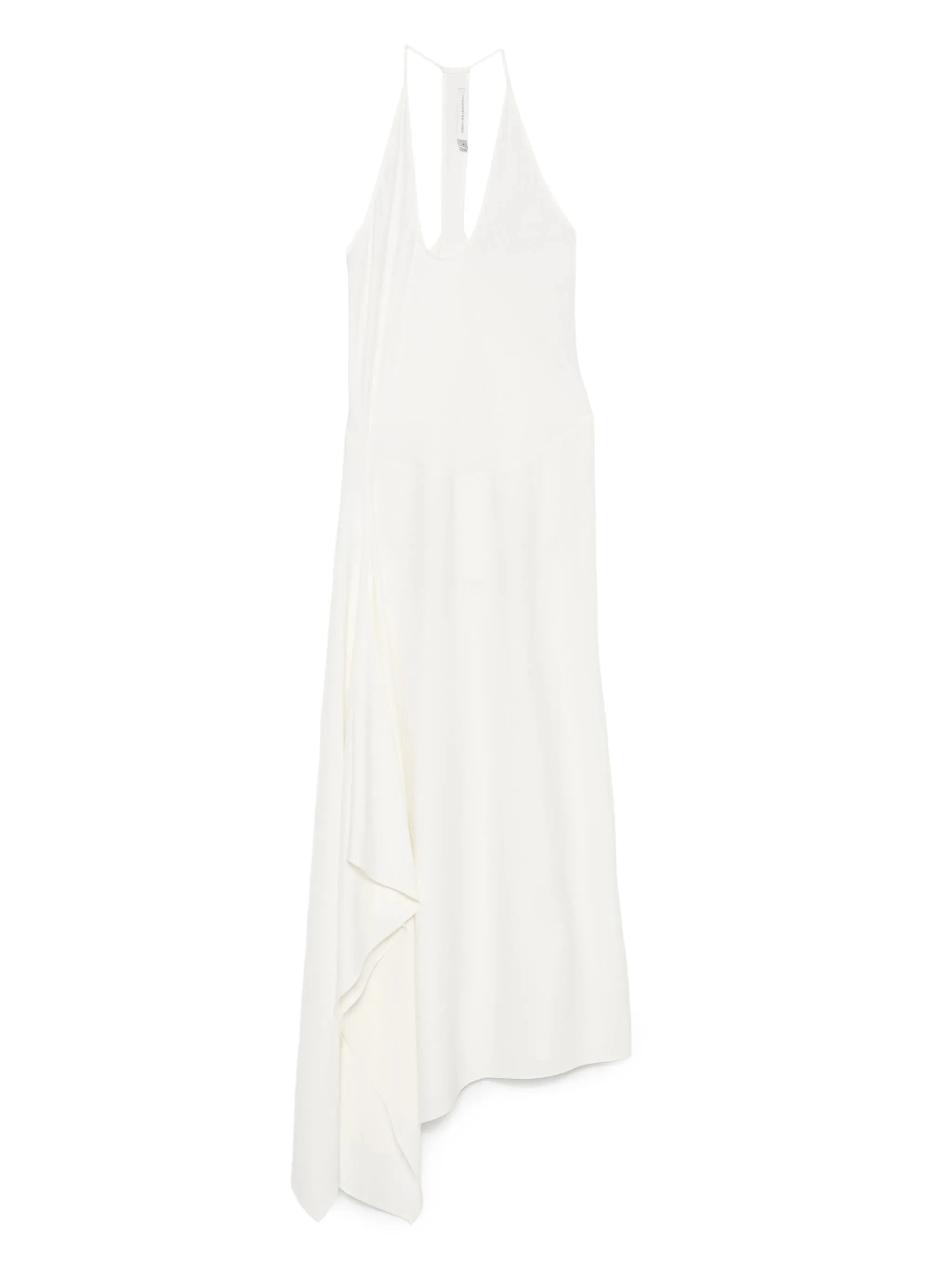 - white - halterneck - asymmetrical hem - draped detail - sleeveless Materials & Product Care Spandex/Elastane 4%, viscose 96% Size & Fit - The model is 1.76 m wearing size 8.