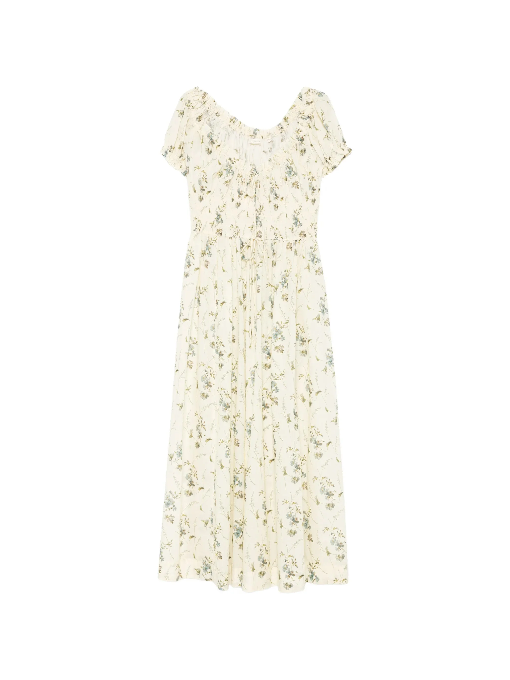 Ashlynn Tie-detailed Shirred Floral-print Organic Cotton-voile Midi Dress