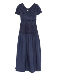 - blue - smocked bodice - ruffled trims - short sleeves - midi length - scoop neck Materials & Product Care Organic Cotton 100% Size & Fit - The model is 1.76 m wearing size S.