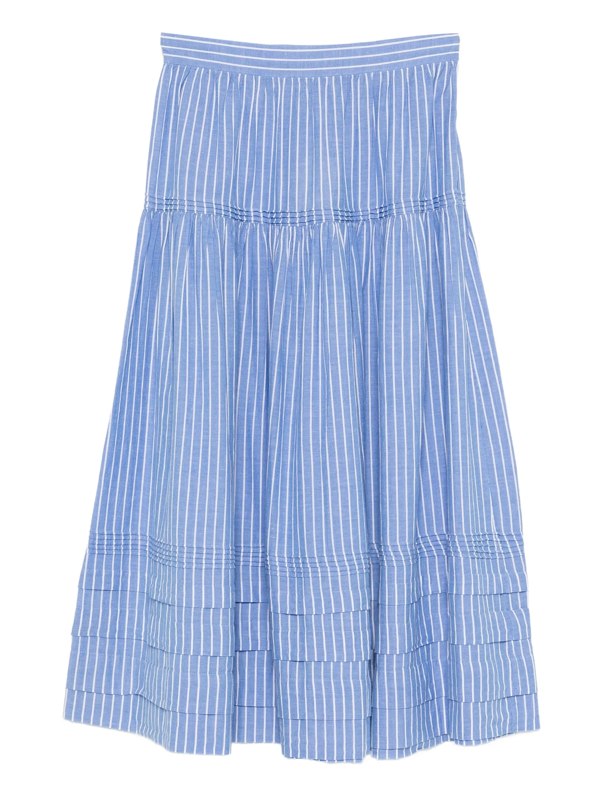 - blue - striped - tiered - elasticated waistband - gathered detail - midi skirt Materials & Product Care Organic Cotton 100% Size & Fit - The model is 1.80 m wearing size S.