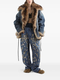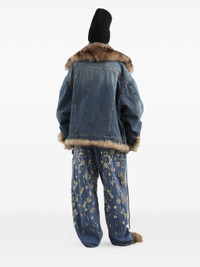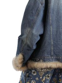 - blue - denim - faux-fur trim - front button fastening - wide lapels - belted waist Materials & Product Care Cotton 100%