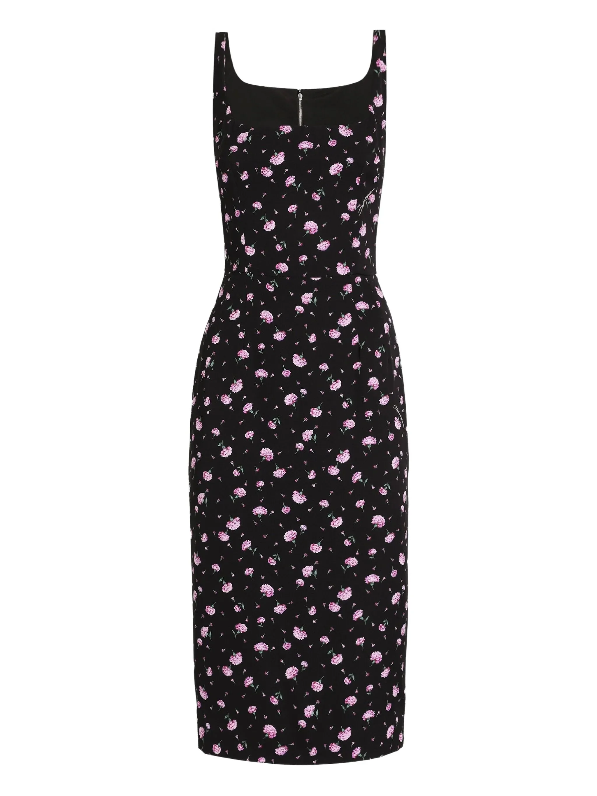 - black - floral print - square neck - sleeveless - zip fastening - back slit Materials & Product Care Lining: Elastane 9%, Silk 91% Outer: Elastane 11%, Silk 89%