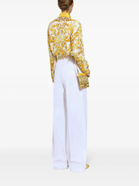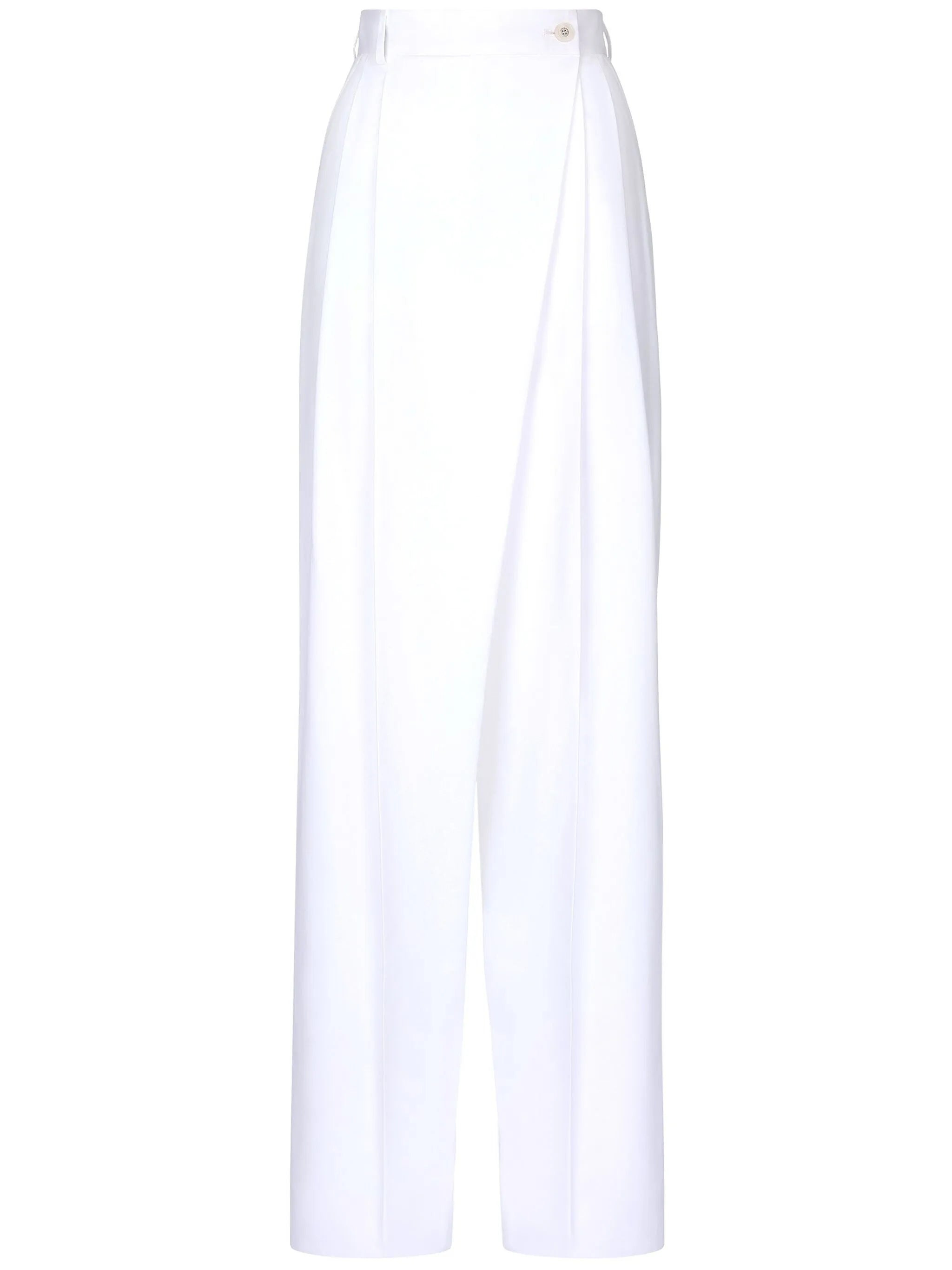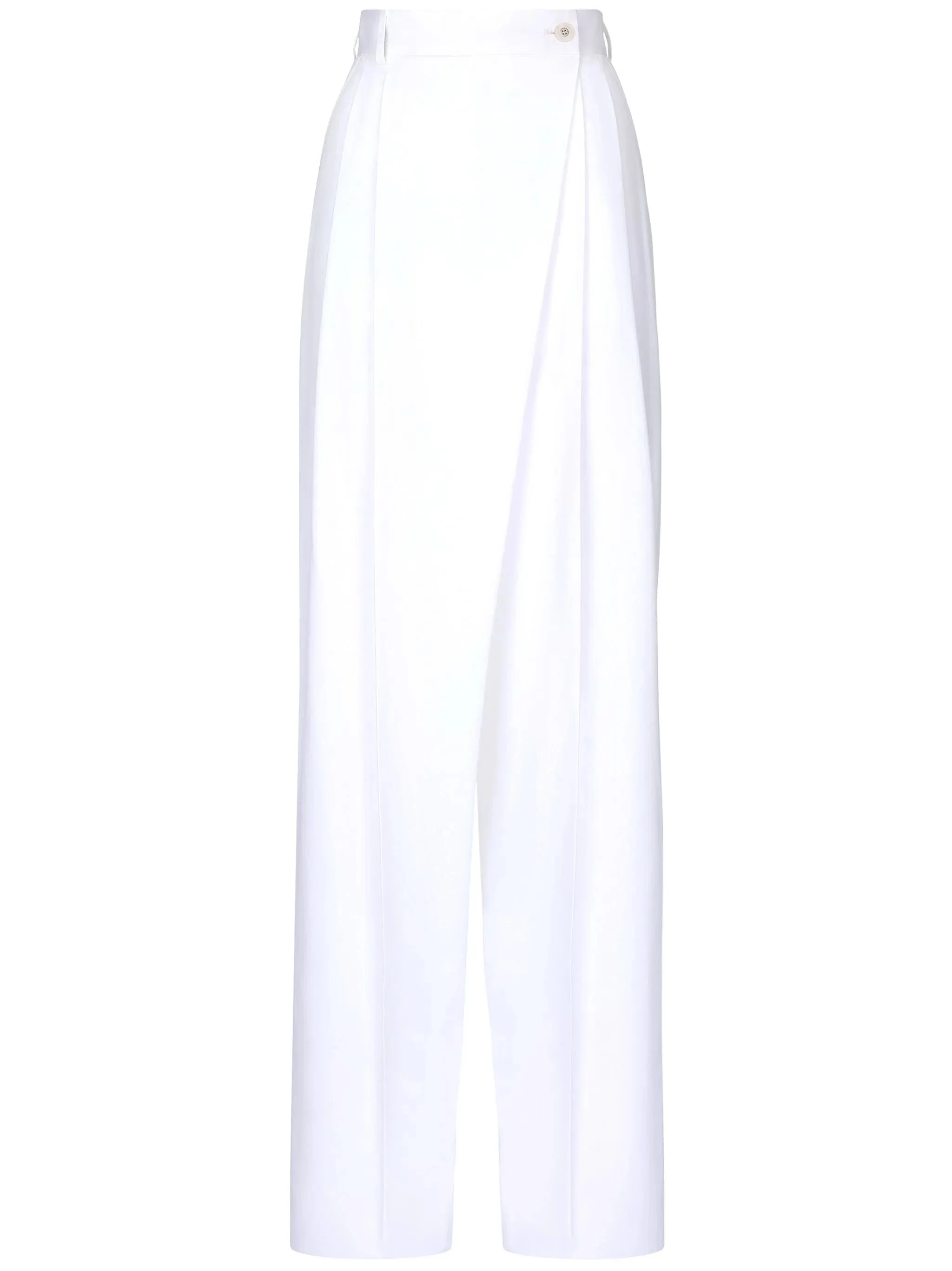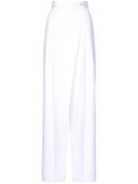 - optical white - cotton - poplin texture - wrap design - high-waisted - pleat detailing - concealed fly and button fastening - flared - two side slit pockets Materials & Product Care Cotton 100% Size & Fit - Designed with a wide-leg cut, these trousers allow for a close fit at the waist and offer a loose and roomy fit over the leg - Made from a midweight non-stretch fabric - This piece fits true to size – take your usual size