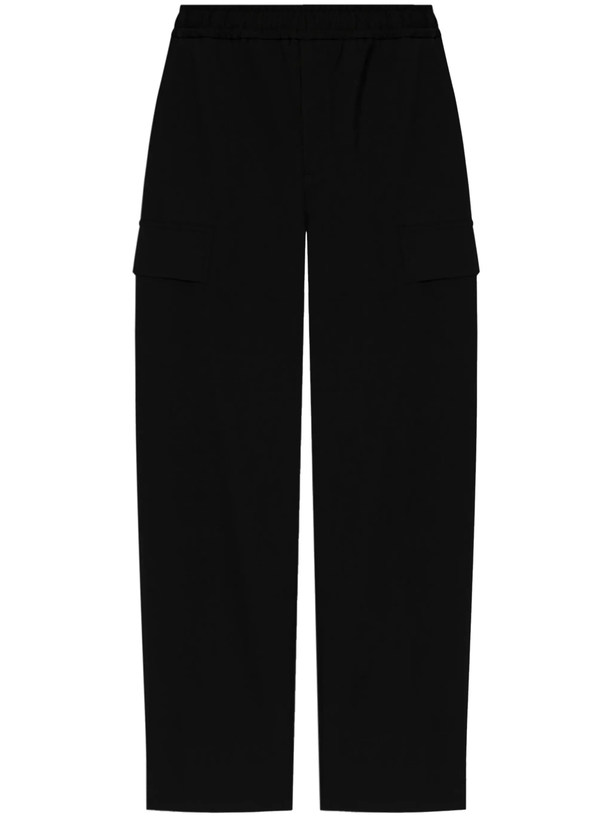 - black - concealed fly and button fastening - rear elasticated waistband - two side slit pockets - two side cargo pockets Materials & Product Care Virgin Wool 100%