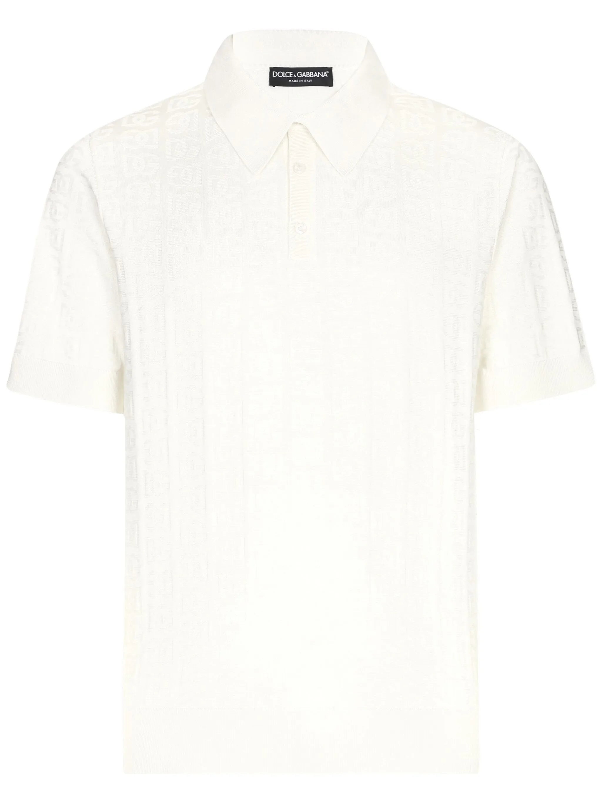 - white - silk - fine knit - monogram jacquard - polo collar - front button placket - short sleeves - ribbed edge - straight hem Materials & Product Care Silk 100%