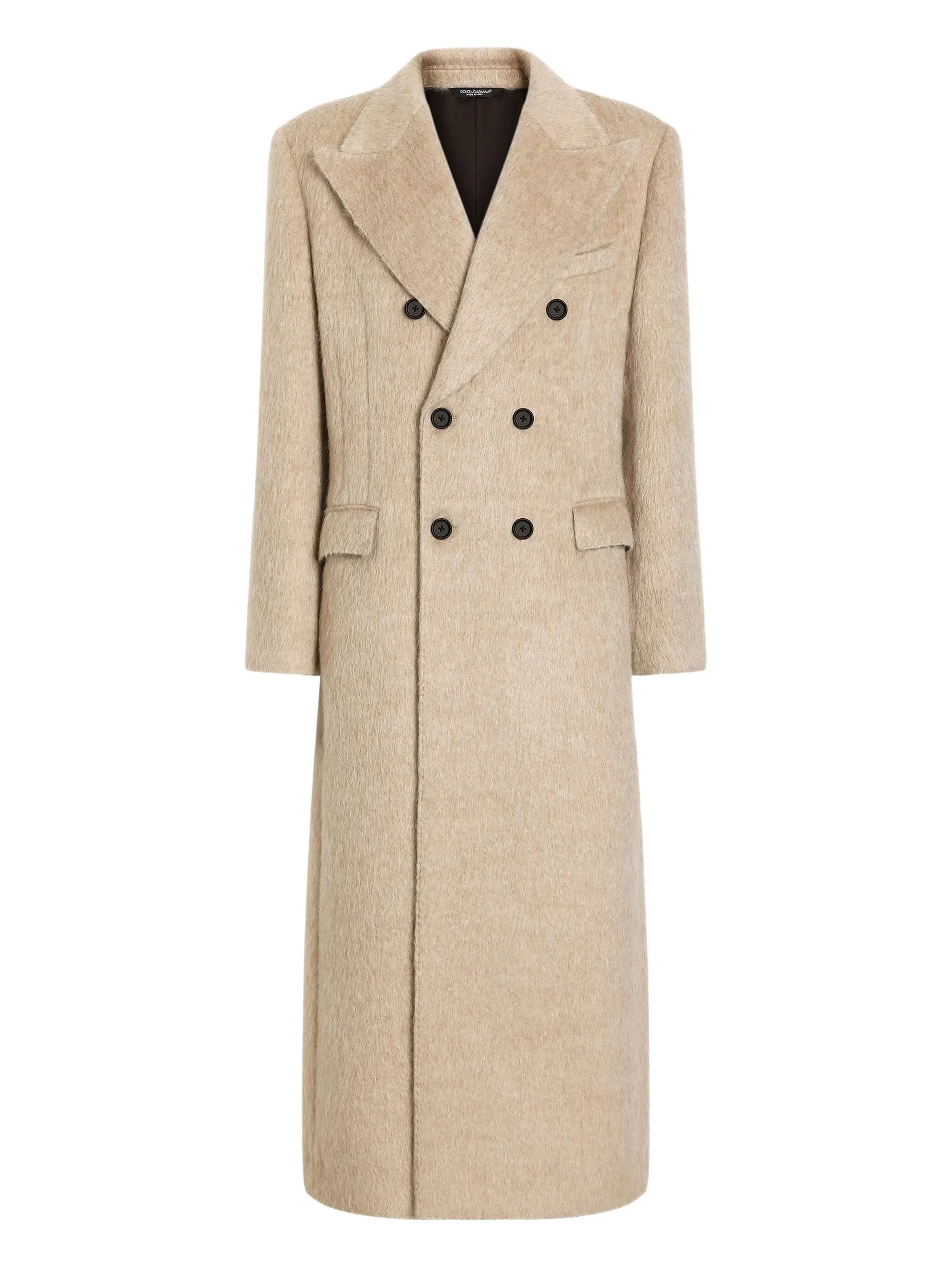 - beige - mohair-blend - double-breasted fastening - long sleeves - buttoned cuffs - centre back-vent Materials & Product Care Mohair 61%, Polyamide 5%, Virgin Wool 34%