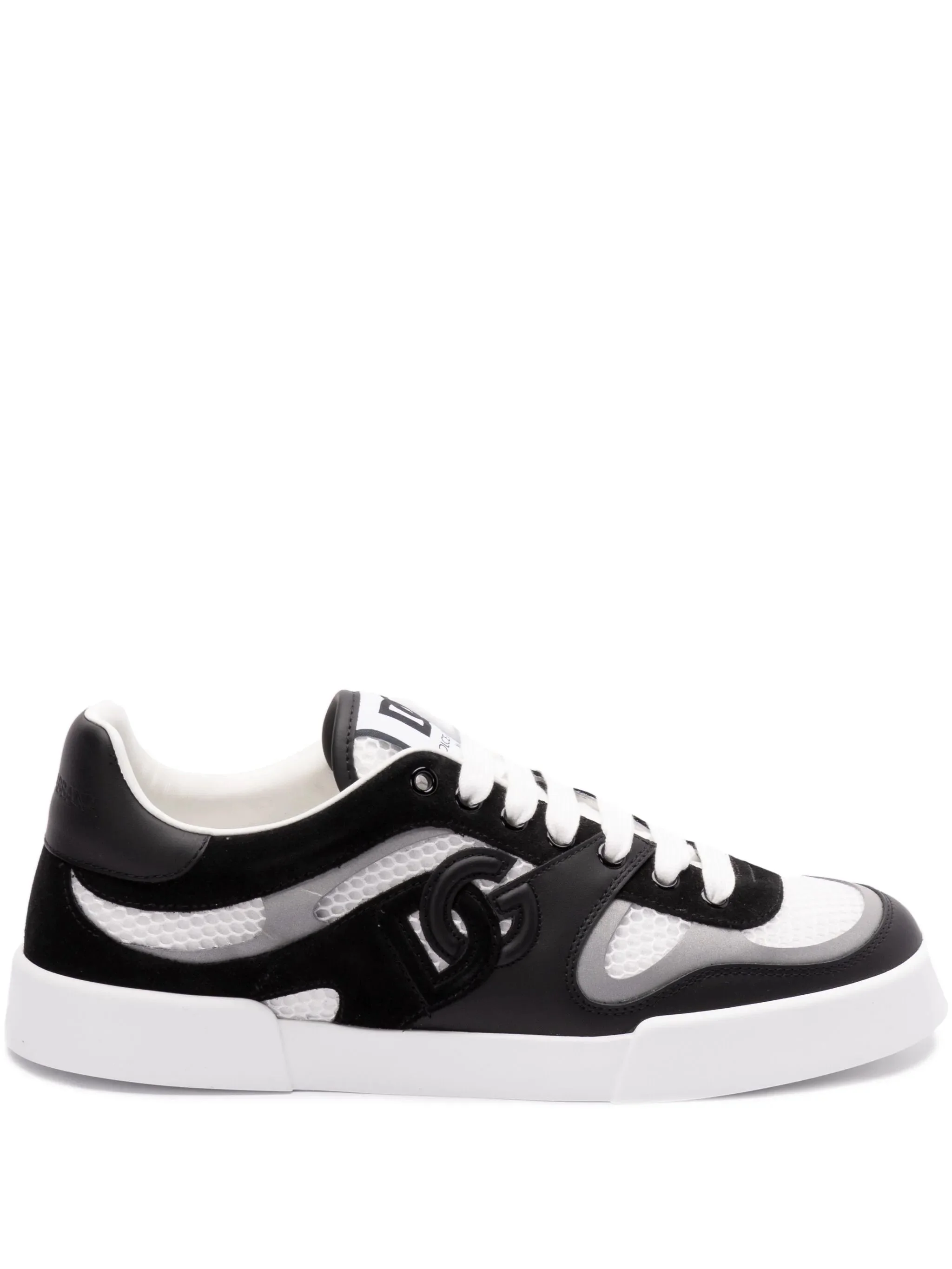 - black - front lace-up fastening - colour-block panelled design - mesh detailing - logo patch to the side Materials & Product Care Lining: Goat Skin 10%, Lamb Skin 90% Outer: Calf Leather 77%, Polyester 23% Sole: Rubber 100%