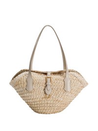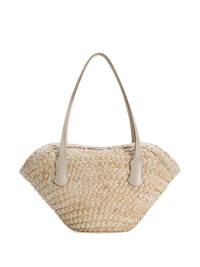 - beige - adjustable strap to the front - two long top handles Materials & Product Care Lining: Calfskin 20%, Corn Leaf 80% Outer: Calfskin 20%, Corn Leaf 80%
