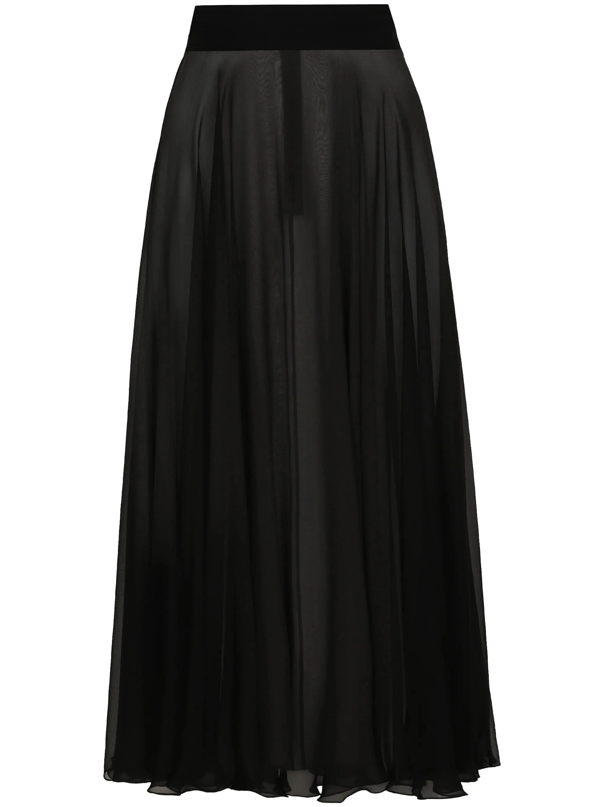 - black - silk - chiffon - high-waisted - fully pleated - concealed rear zip fastening - mid-calf length - straight hem Materials & Product Care Silk 100%