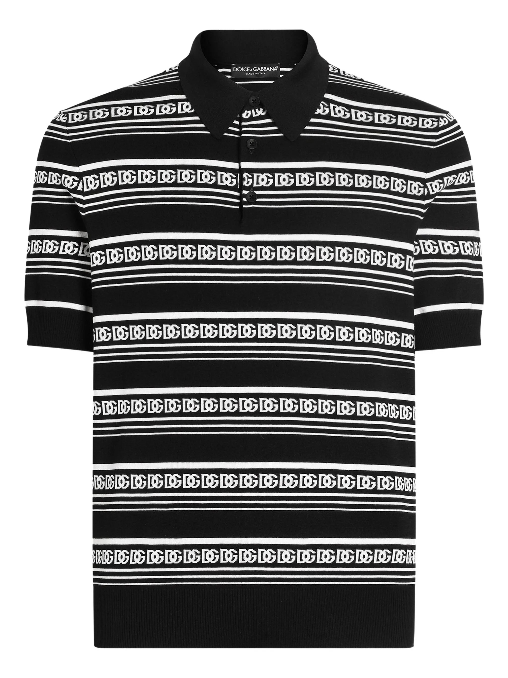 - black - short front button fastening - all-over logo print - polo collar - short sleeves Materials & Product Care Silk 100%