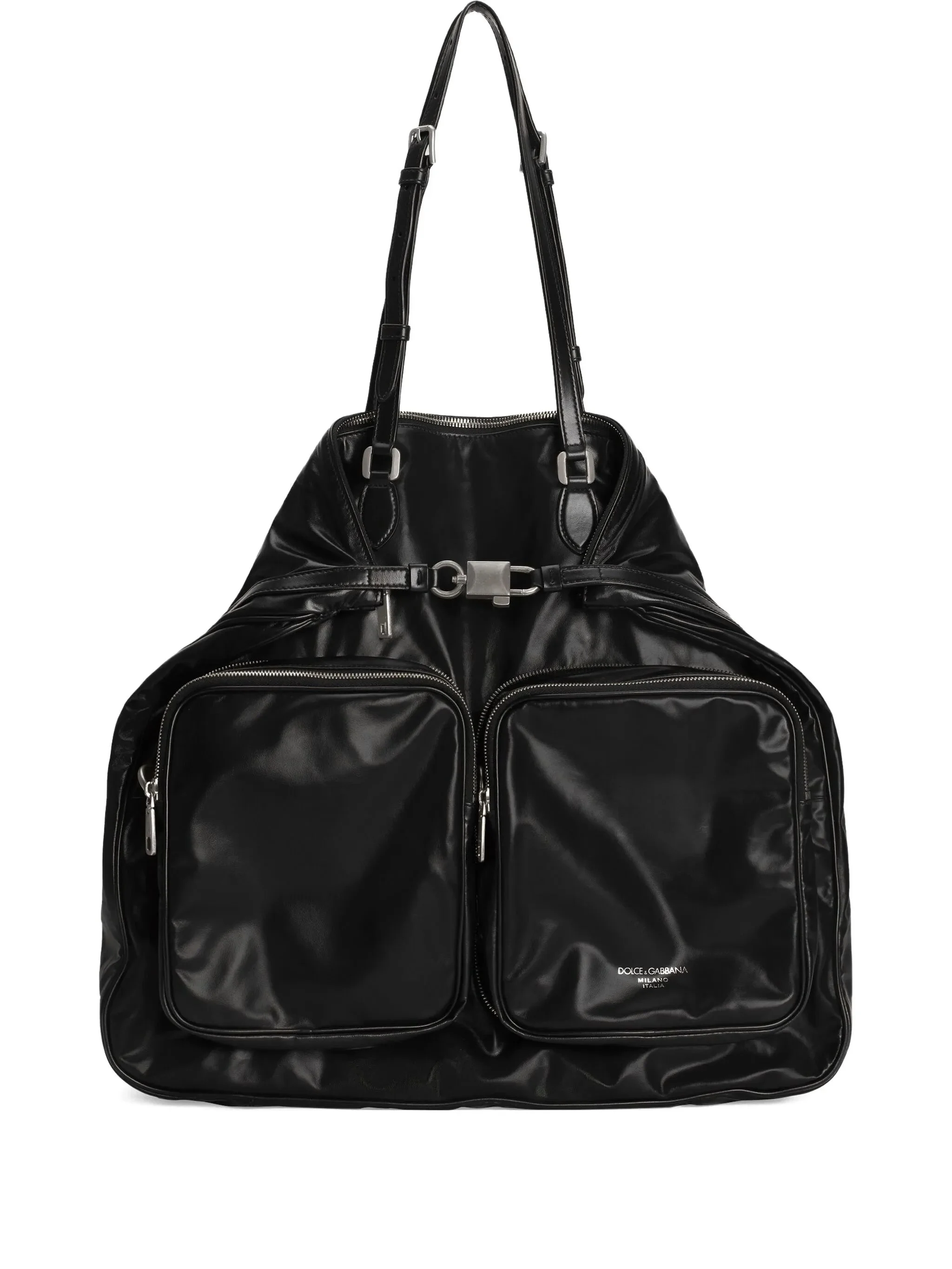 - black - zip fastening - adjustable shoulder strap - front zip pocket - logo detail - silver-tone hardware Materials & Product Care Lining: Polyamide 100% Outer: Calfskin 100%
