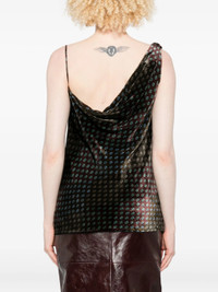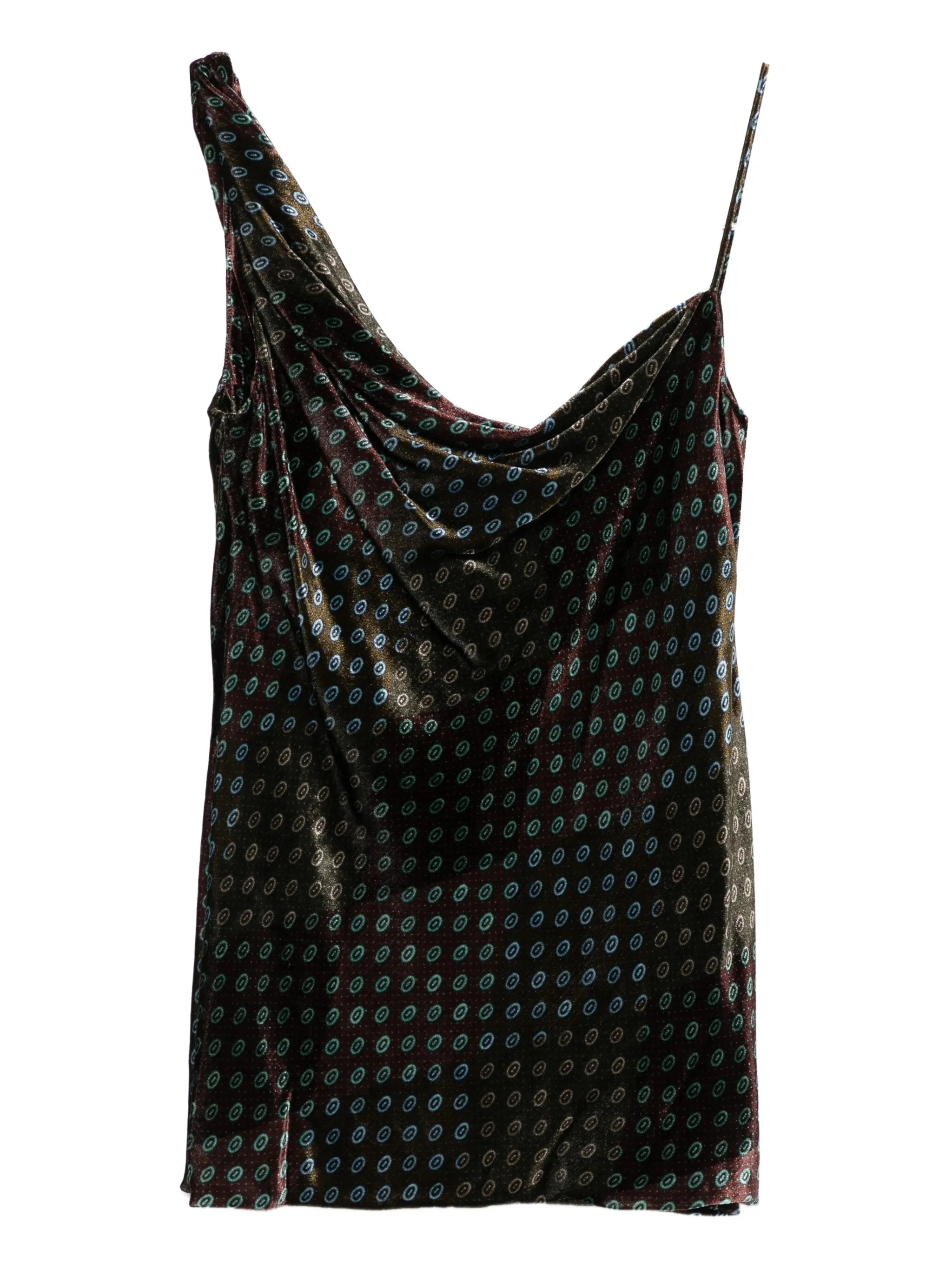 - khaki green - one-shoulder design - draped neckline - all-over pattern - sleeveless - straight hem Materials & Product Care Silk 100%, Velvet 100%, viscose 100% Size & Fit - The model is 1.75 m wearing size 38.