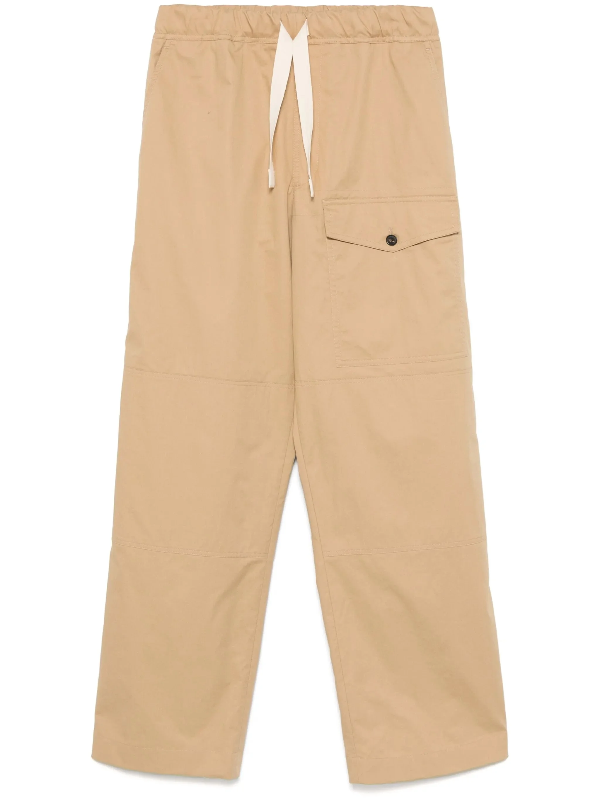 - sand beige - zip fly fastening - elasticated drawstring waistband - two side slash pockets - side cargo pocket Materials & Product Care Cotton 100%