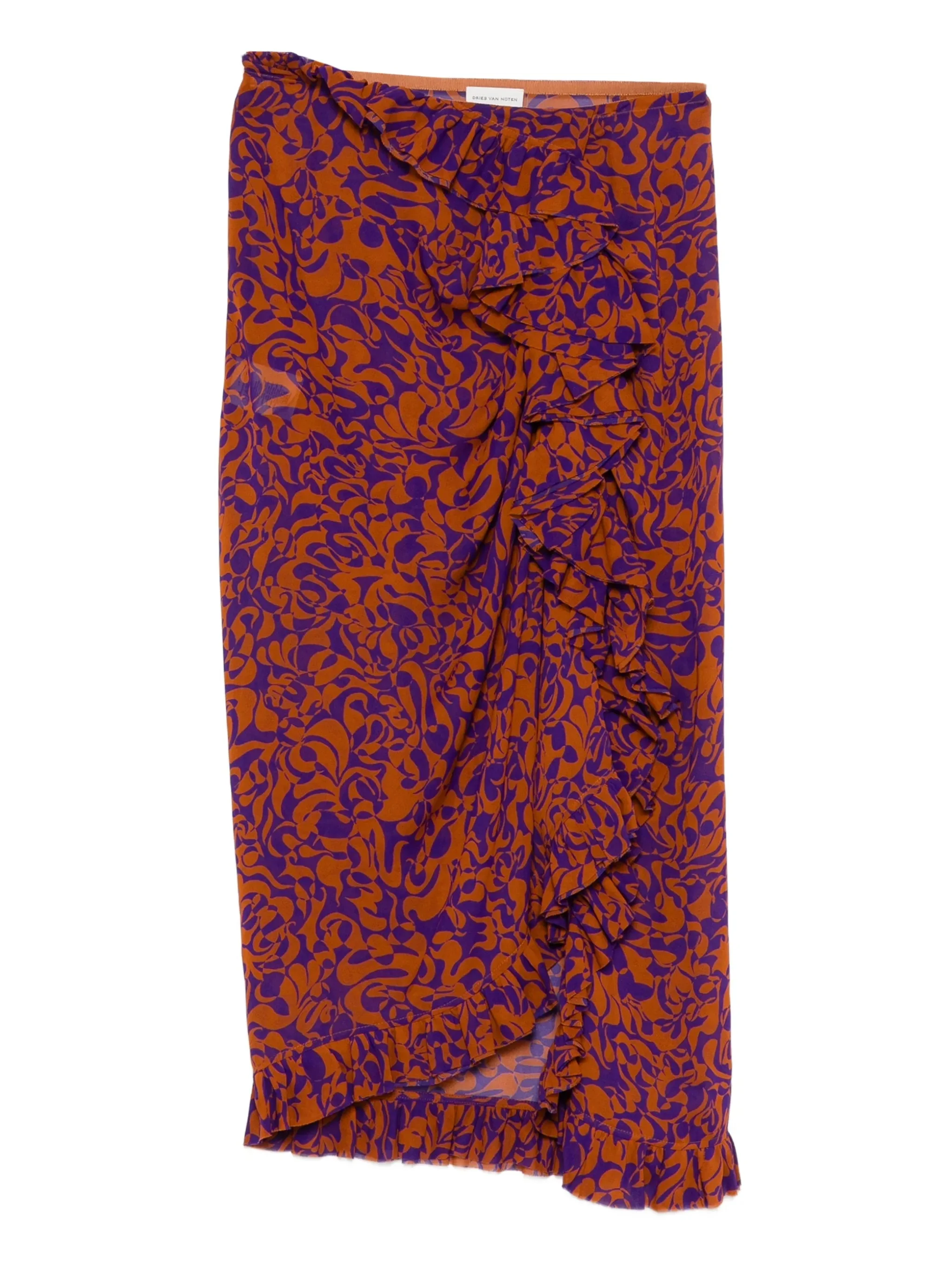 - orange - floral print - ruffled trim - asymmetric construction - gathered detail - wrap design Materials & Product Care viscose 100% Size & Fit - The model is 1.80 m wearing size 36.