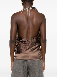 - brown - textured detail - draped design - gathered detail - high neck - sleeveless Materials & Product Care Elastane 6%, Silk 94% Size & Fit - The model is 1.77 m wearing size 38.