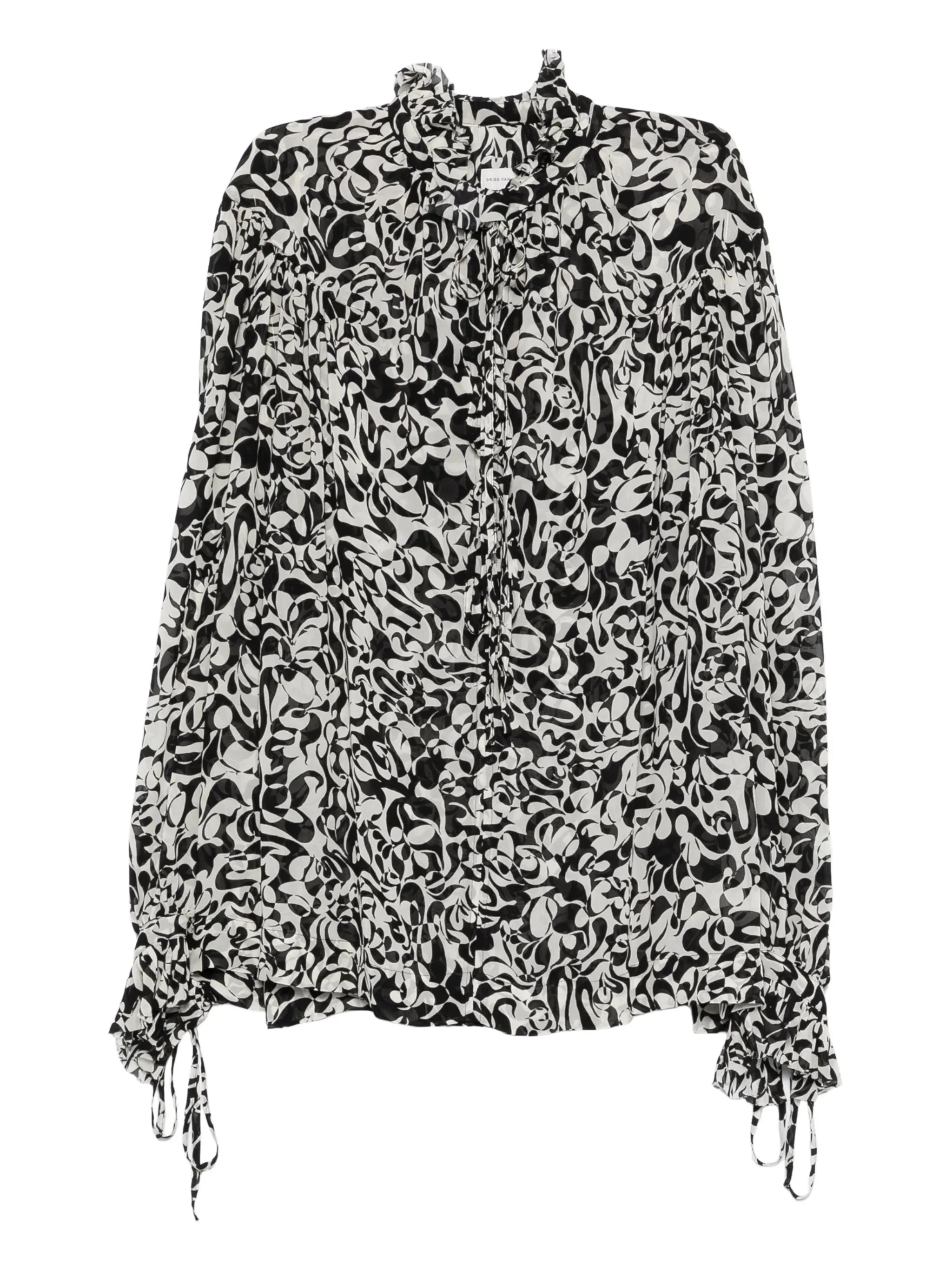 - black - graphic pattern - ruffled high neck - drawstring cuffs - long sleeves - relaxed fit Materials & Product Care viscose 100% Size & Fit - The model is 1.80 m wearing size S.