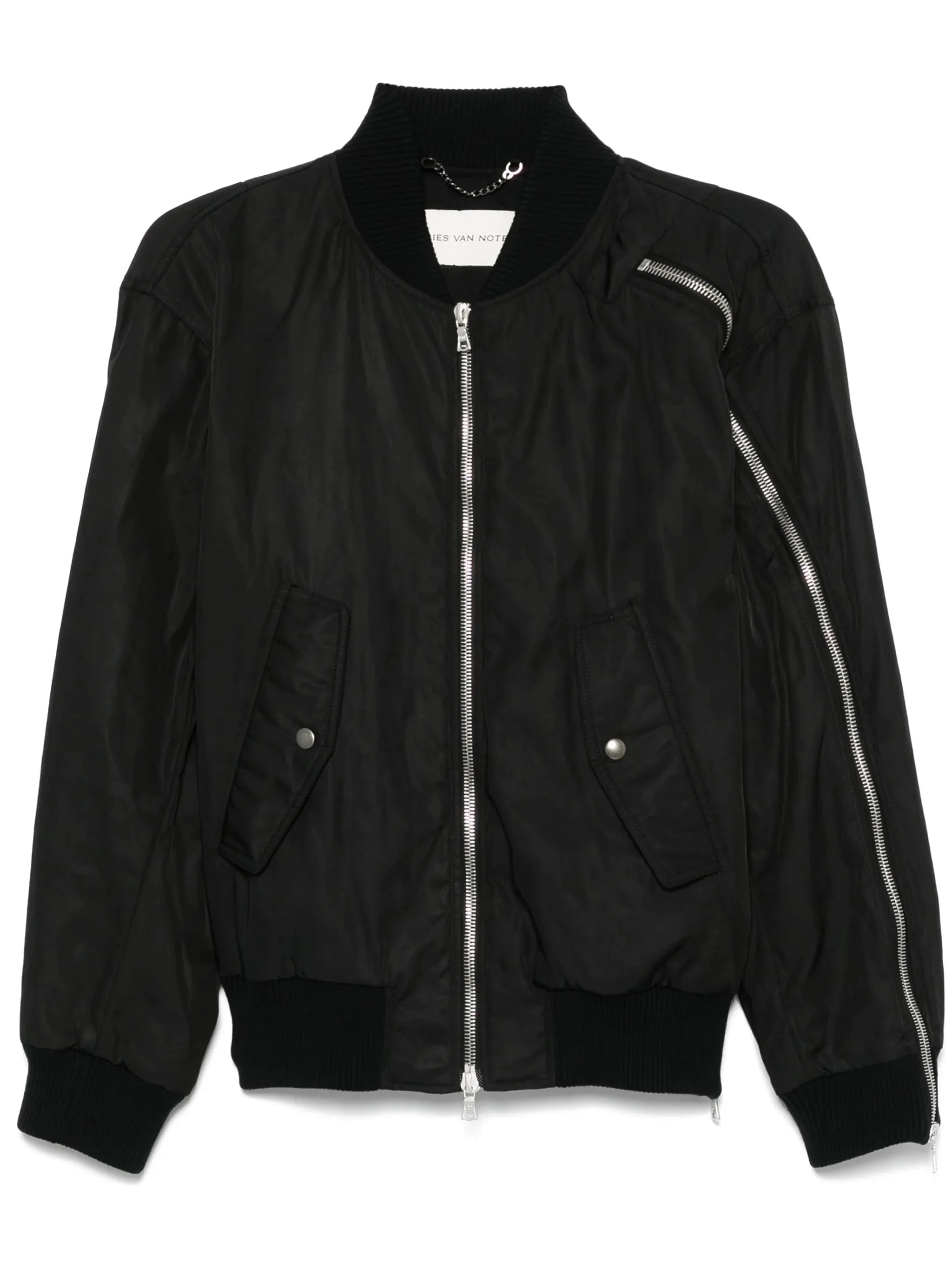 - black - front two-way zip fastening - two side flap pockets - decorative zip detailing - baseball collar Materials & Product Care Lining: Cotton 51%, viscose 49% Outer: Polyester 100% Size & Fit - Designed to be unstructured, offering a loose fit throughout - Made from a padded non-stretch fabric, giving it no natural elasticity - The ribbed hem offers a close, comfortable fit - The model is 1.87 m wearing size M.