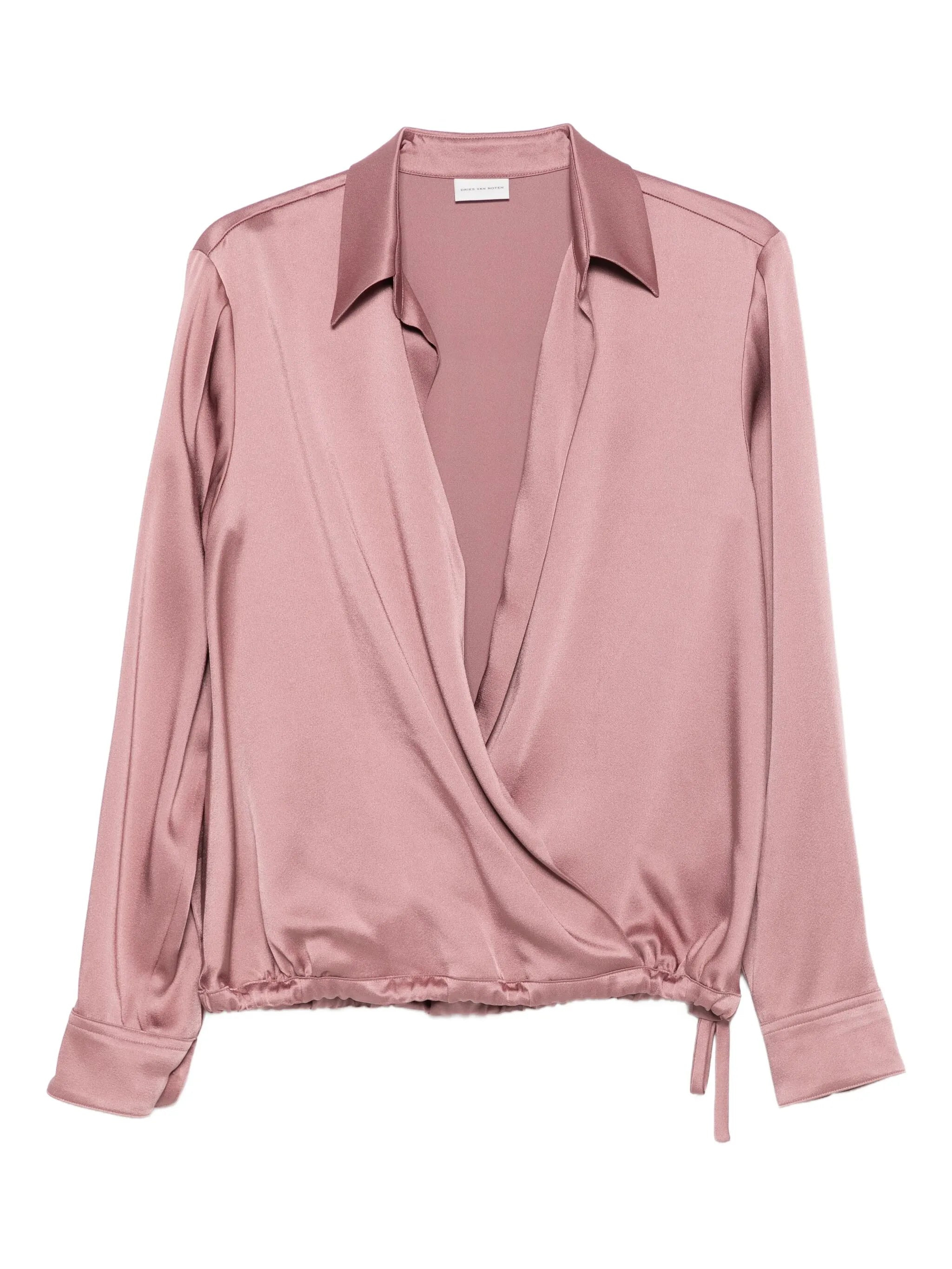 - old rose pink - satin - wrap-effect front - classic collar - long sleeves - drawstring hem - cuffed sleeves Materials & Product Care Acetate 73%, viscose 27% Size & Fit - The model is 1.75 m wearing size 38.