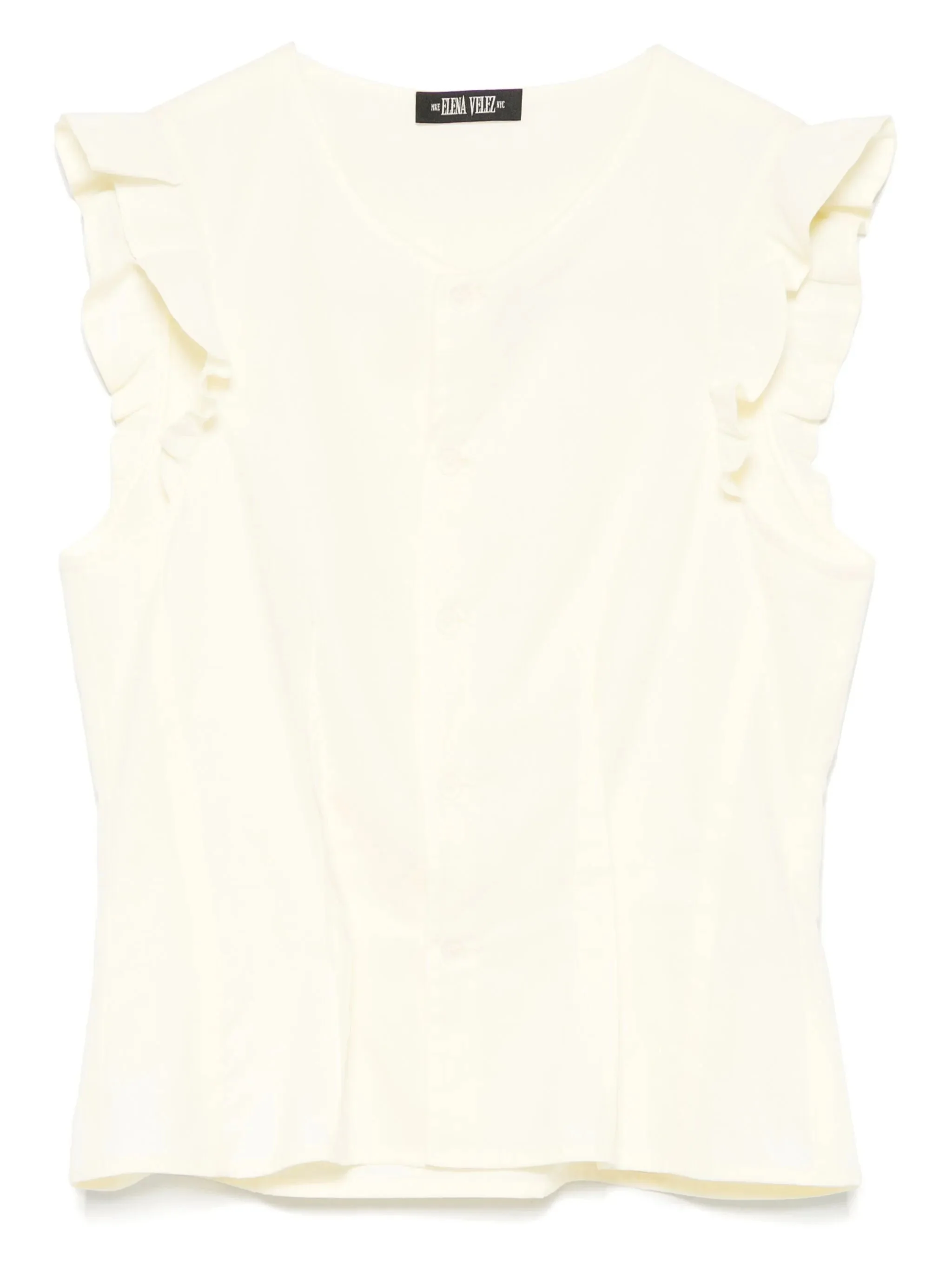 - butter yellow - front button fastening - crew neck - short sleeves - ruffled detailing Materials & Product Care Cotton 100% Size & Fit - Designed for a slim fit that sits just away from the body offering a close yet comfortable fit - Made from a lightweight non-stretch fabric - The model is 1.78 m wearing size S.