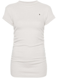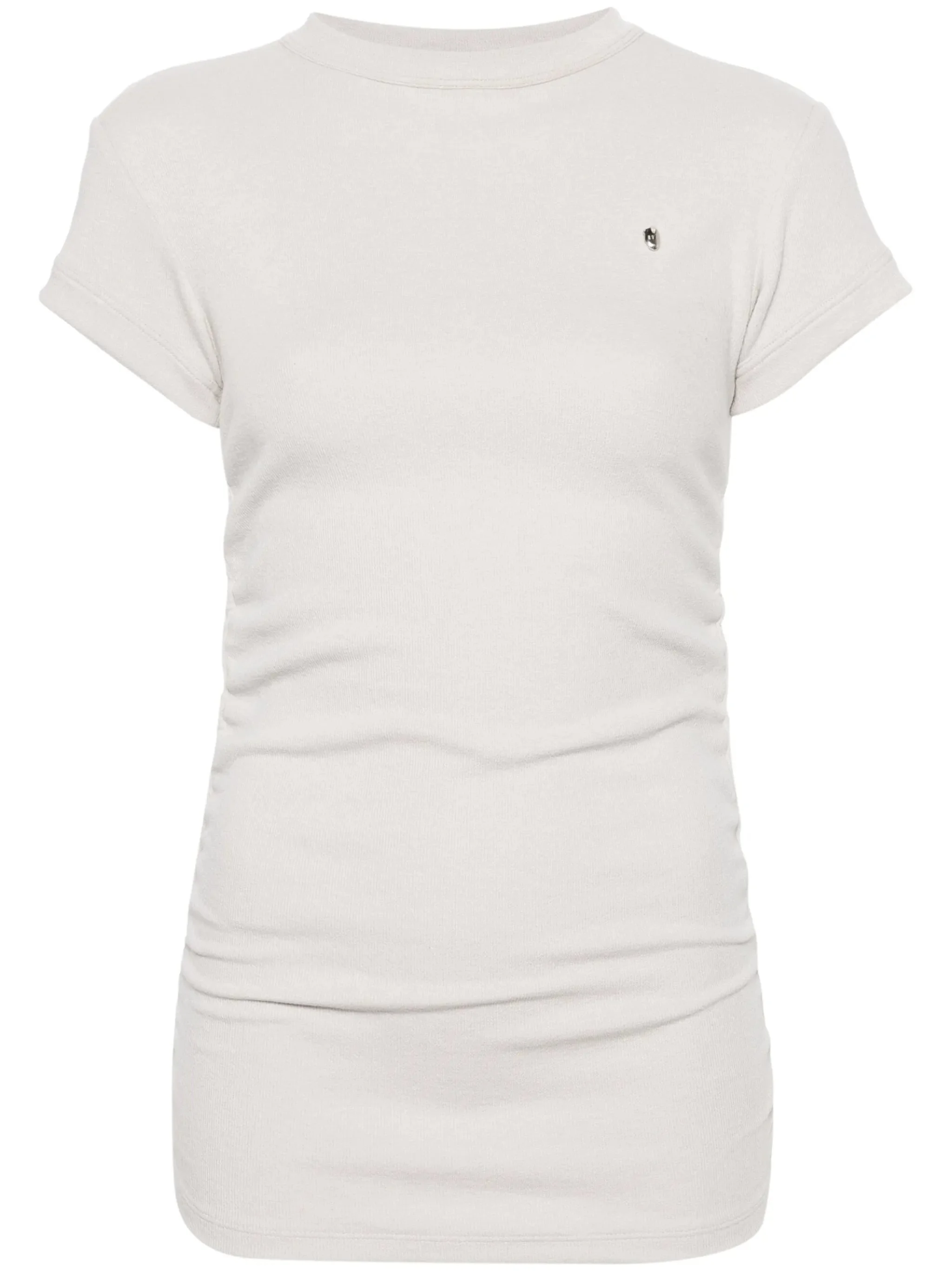 - beige - jersey texture - fine ribbed - crew neck - short sleeves - ruched bodice - straight hem Materials & Product Care Fabric 100% Size & Fit - Designed for a slim fit that sits just away from the body offering a close yet comfortable fit - Made from a midweight non-stretch fabric, this piece offers minimal elasticity when worn - This piece fits true to size – take your usual size - The model is 1.80 m wearing size S.