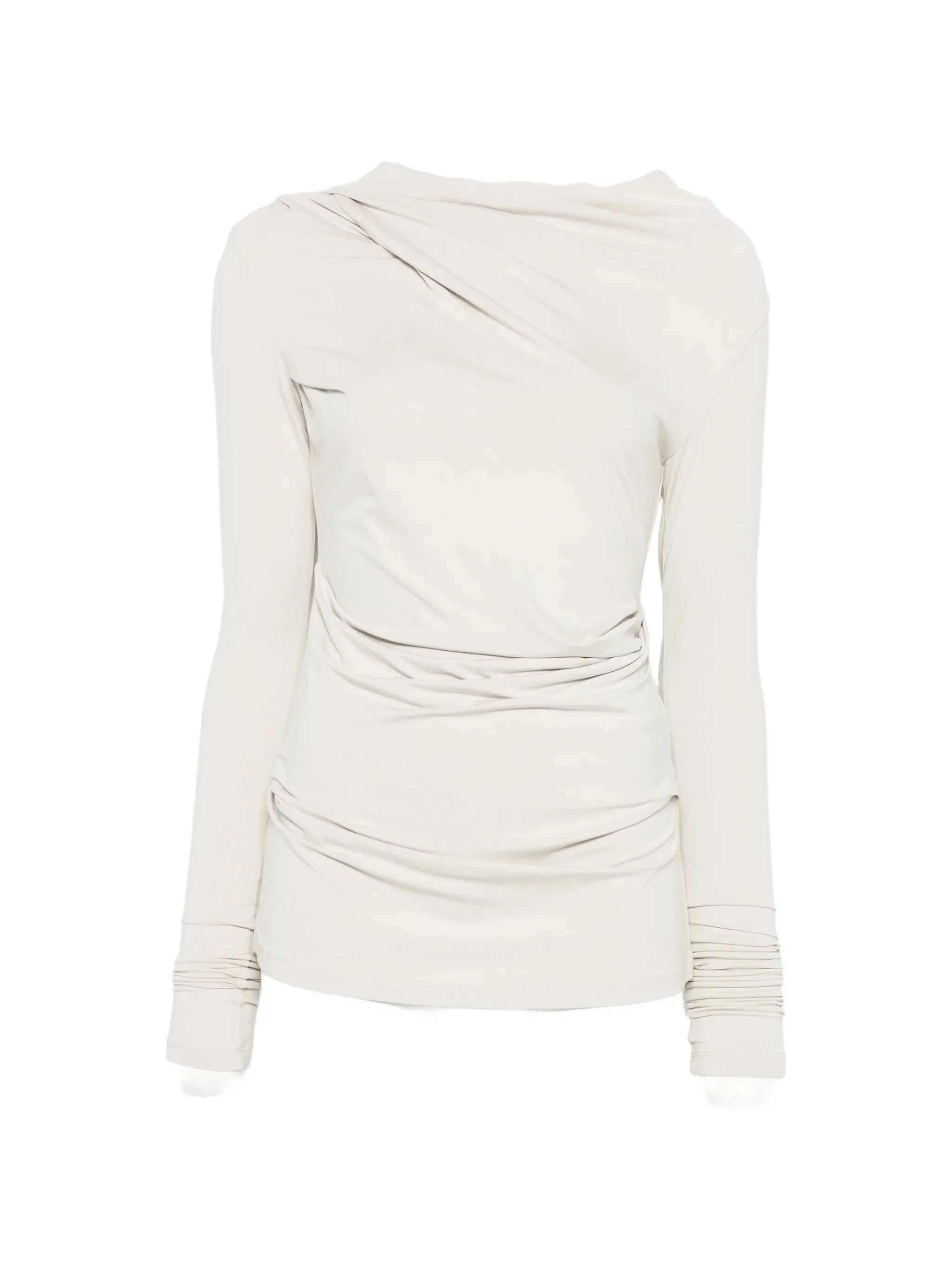 - grey - long sleeves - ruched detail - round neck - fitted silhouette Materials & Product Care Elastane 8%, viscose 92% Size & Fit - The model is 1.80 m wearing size S.
