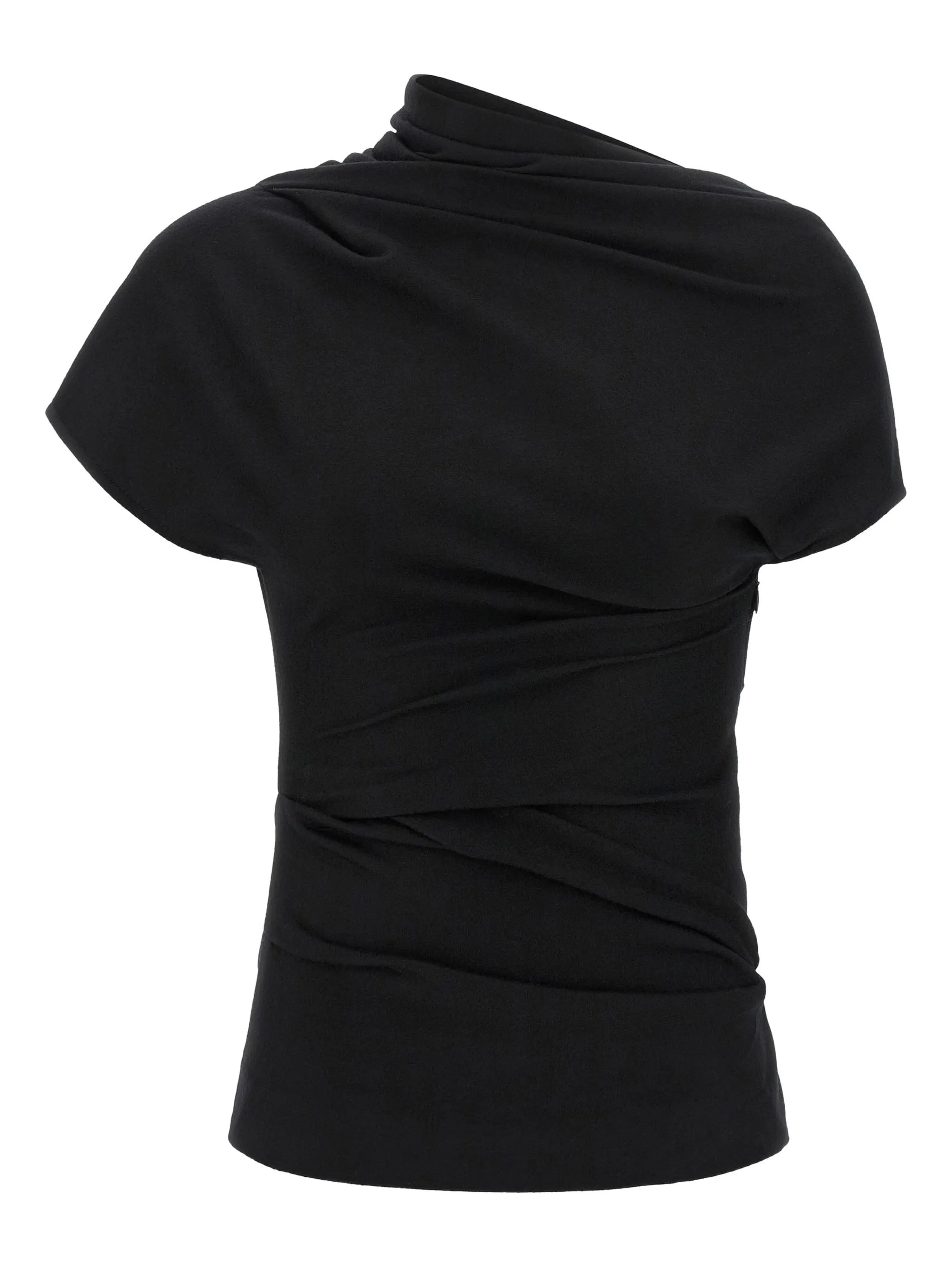 - black - short sleeves - drape detailing - pleat detailing Materials & Product Care Wool 100%