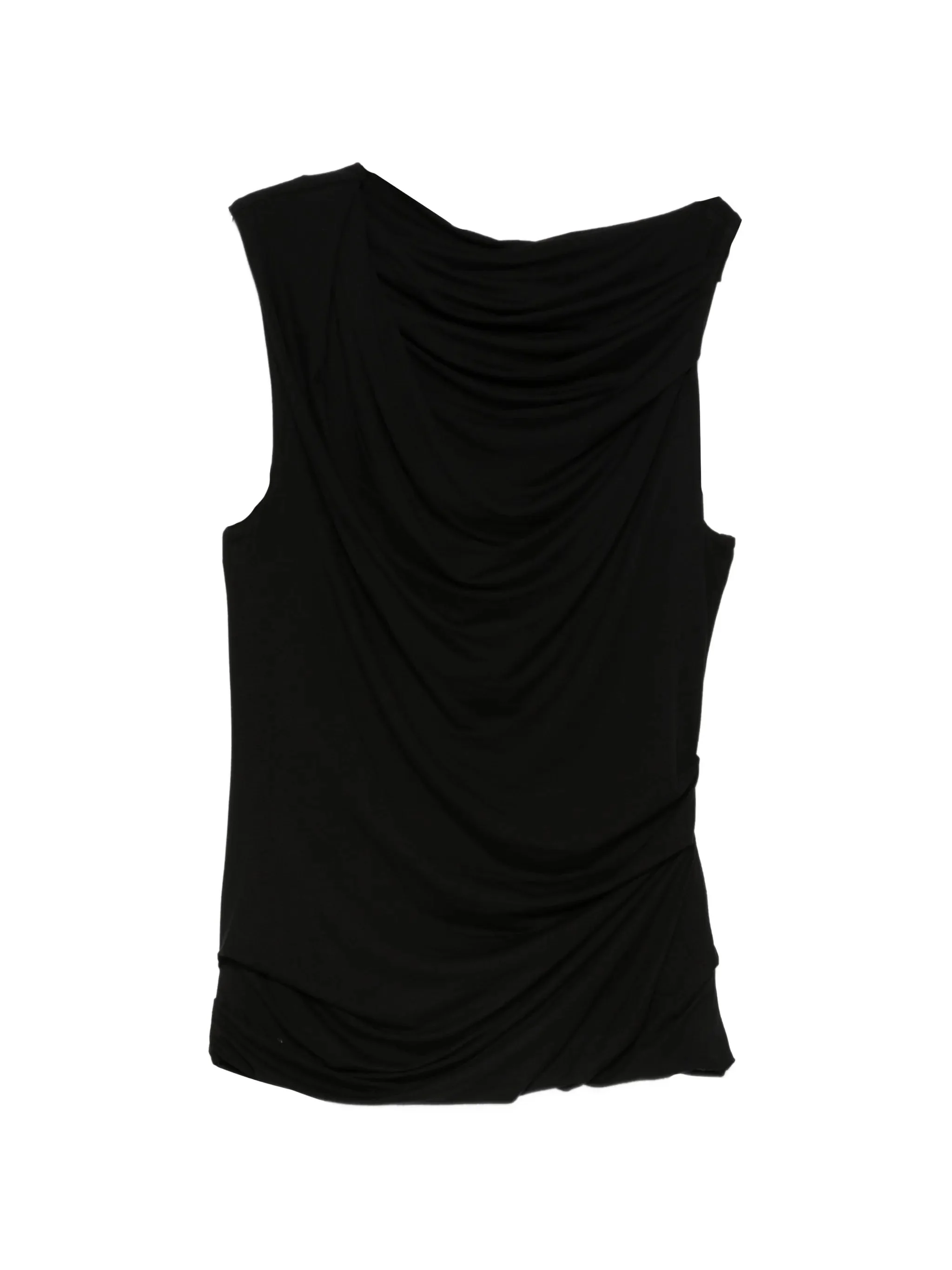 - black - draped detail - sleeveless - asymmetric neck - ruched detail - gathered detail Materials & Product Care Elastane 8%, viscose 92%