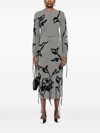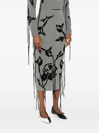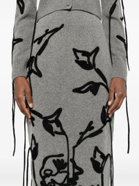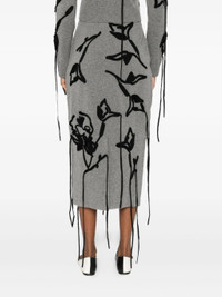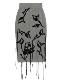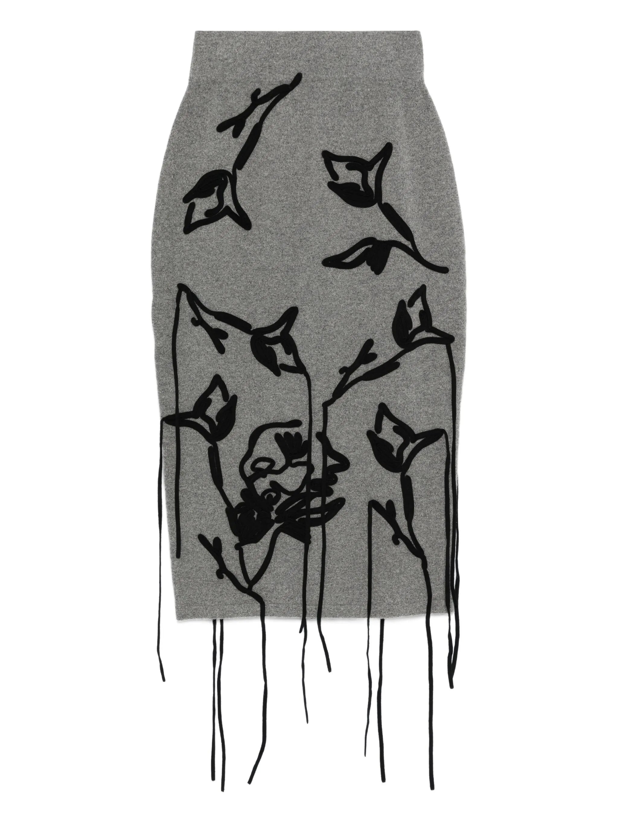 - grey - pencil shape - floral pattern - black floral embroidery - mid-length - frayed hemline Materials & Product Care Merino 100% Size & Fit - The model is 1.80 m wearing size S.