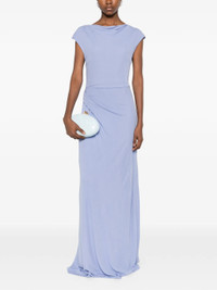 - blue - draped detailing - cowl neck - short sleeves - concealed back zip fastening - floor-length Materials & Product Care Lining: Elastane 5%, Polyester 95% Outer: viscose 100% Size & Fit - The model is 1.73 m wearing size 10.