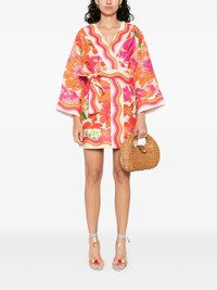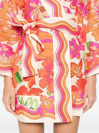 - carrot orange - front tie fastening - all-over floral print - V-neck - long sleeves Materials & Product Care Linen/Flax 100% Size & Fit - Designed to be unstructured, offering a loose fit throughout - Made from a midweight non-stretch fabric, this piece offers minimal elasticity when worn - The adjustable tie waist gives a more adaptable and personalised fit - The model is 1.80 m wearing size S.