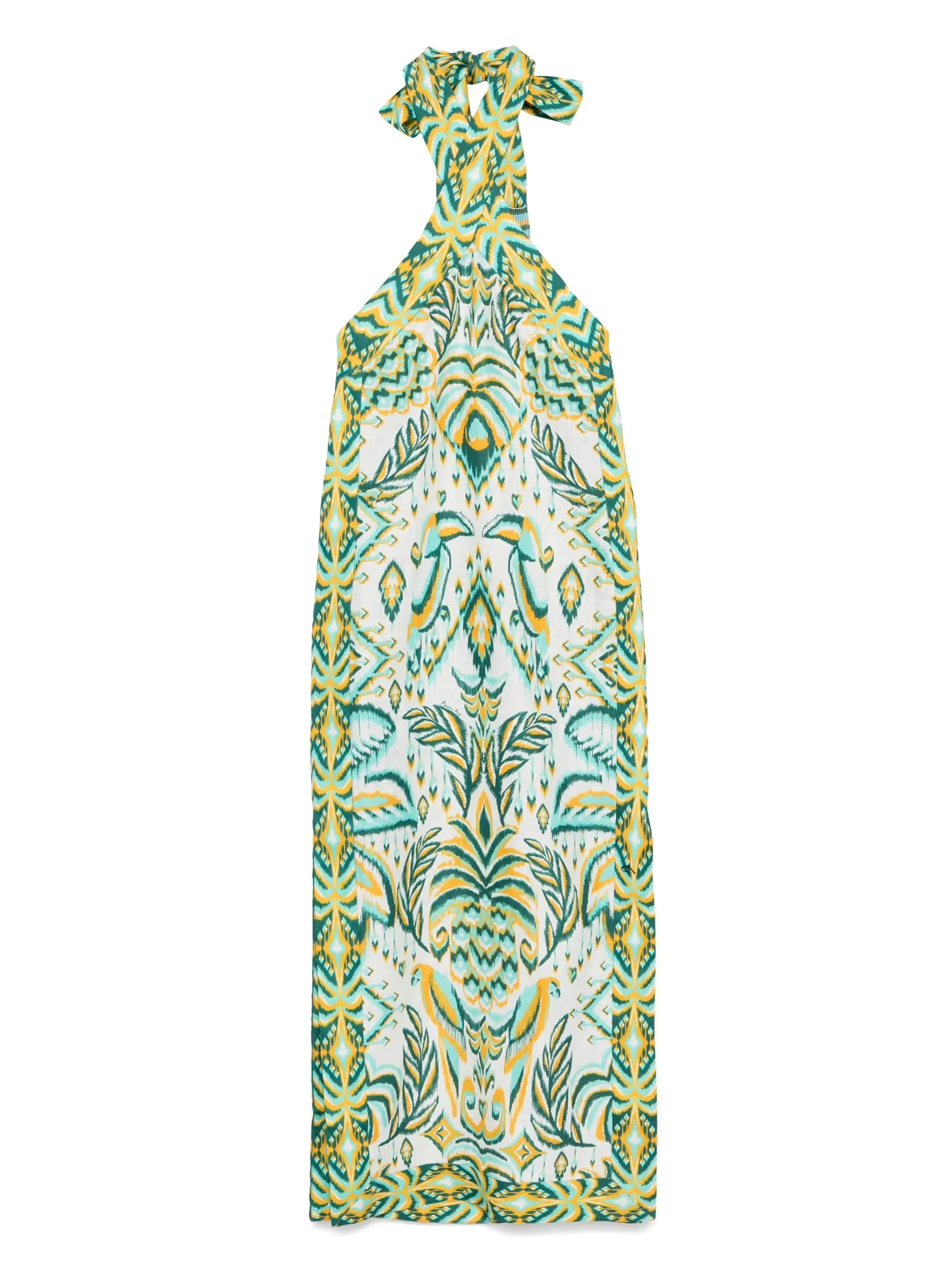 Off-White Tropical Tapestry Euroflax™ Premium Linen Maxi Dress