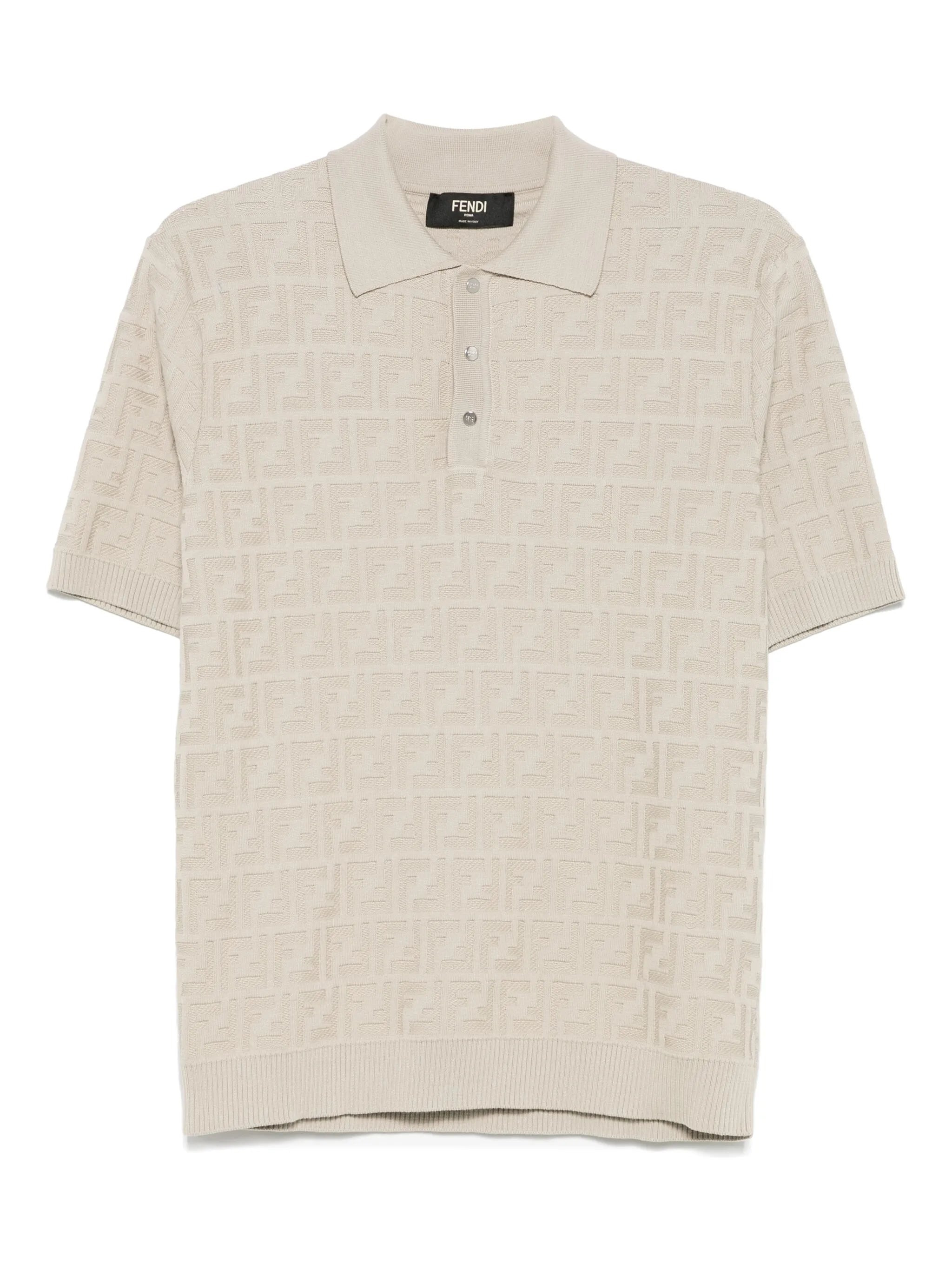- light beige - short front button fastening - ribbed trim - short sleeves - FF motif Materials & Product Care Cotton 100% Size & Fit - Designed for a slim fit, this polo shirt offers a comfortable fit that sits just away from the body - Made from a midweight non-stretch fabric, this piece offers minimal elasticity when worn - The model is 1.85 m wearing size 48.