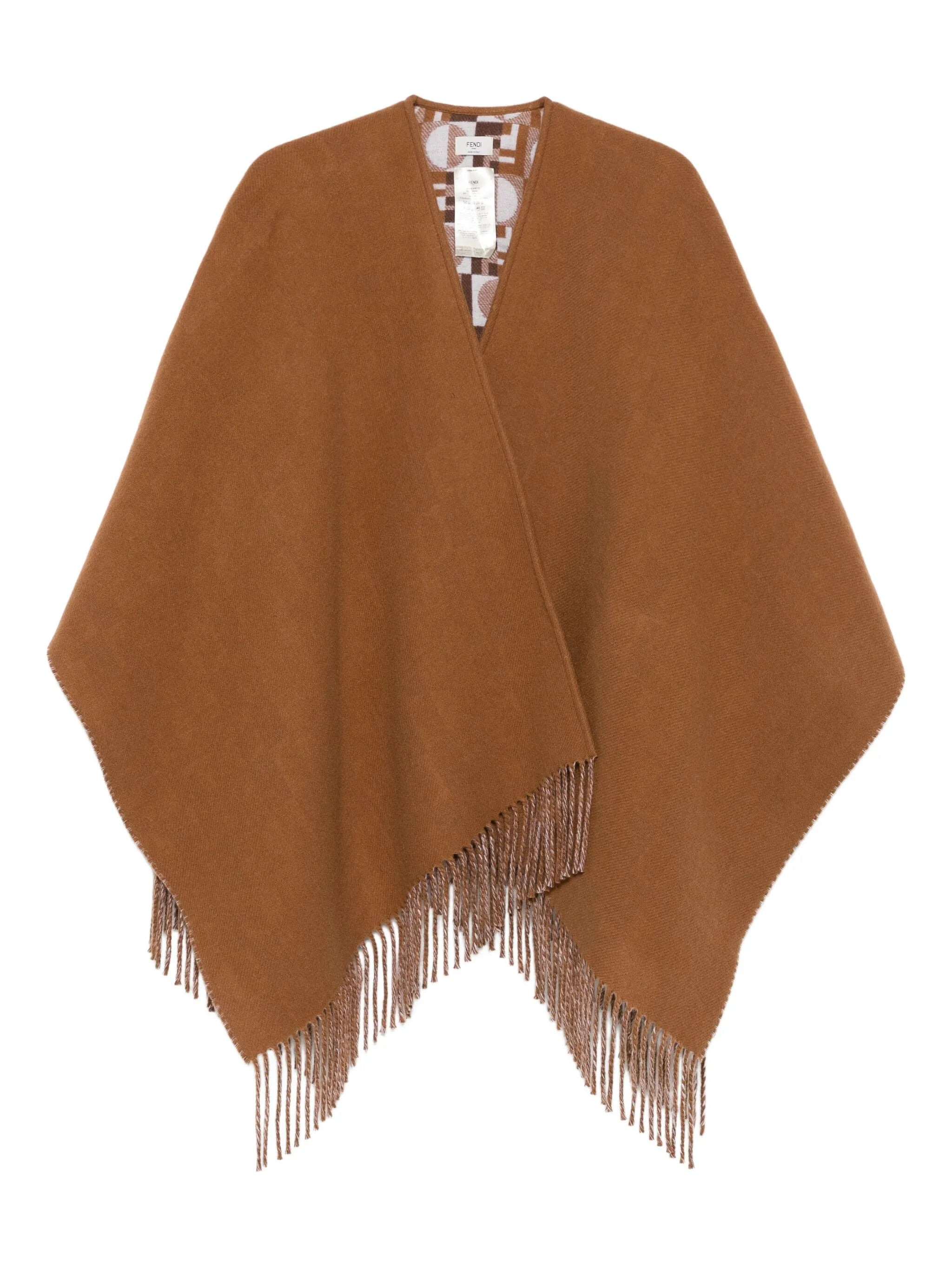 - brown - fringed trim - patterned lining - open front Materials & Product Care Fabric 100%