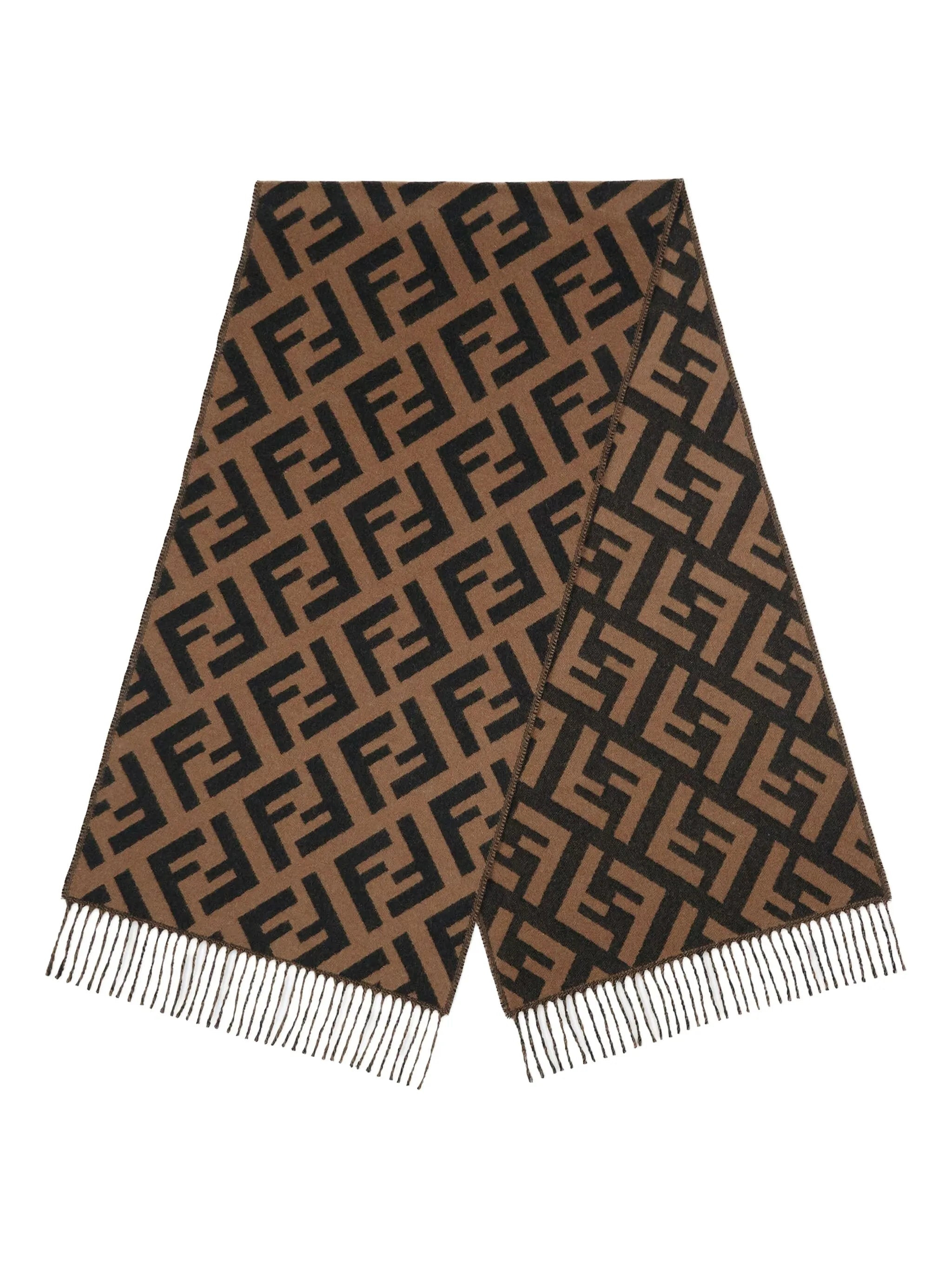 - tobacco brown/black - alpaca-mohair-wool blend - FF-logo print - full jacquard - fringed edge Materials & Product Care Cashmere 100%