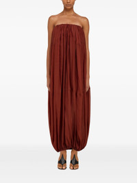 - brick red - concealed rear zip fastening - bustier-style neckline - strapless - elasticated trim Materials & Product Care Cupro 62%, Silk 38%